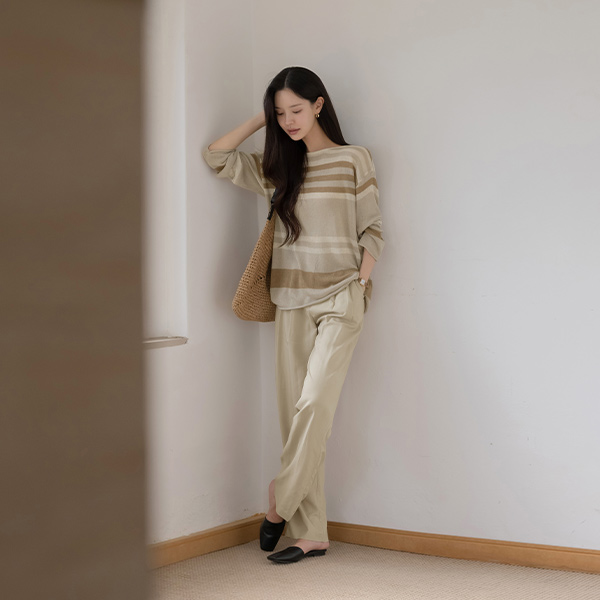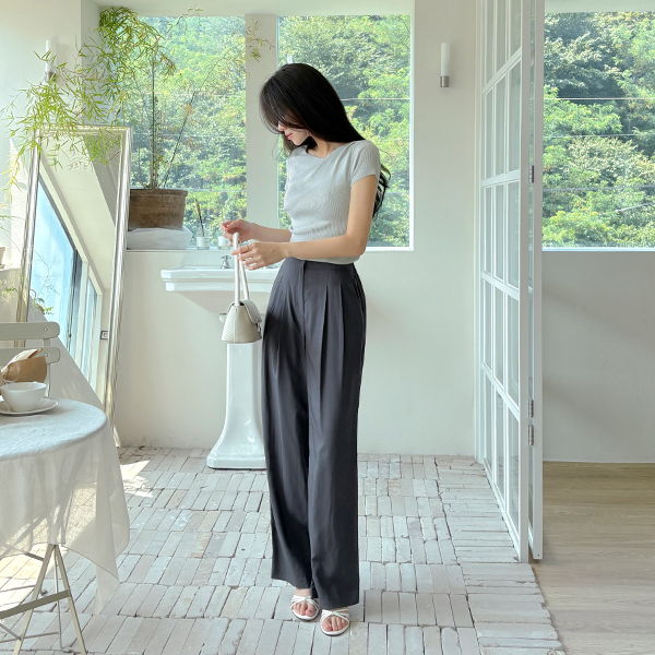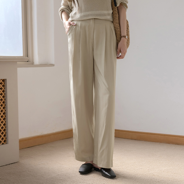 灯光 细褶 休闲风格 宽绰 宽松长裤
