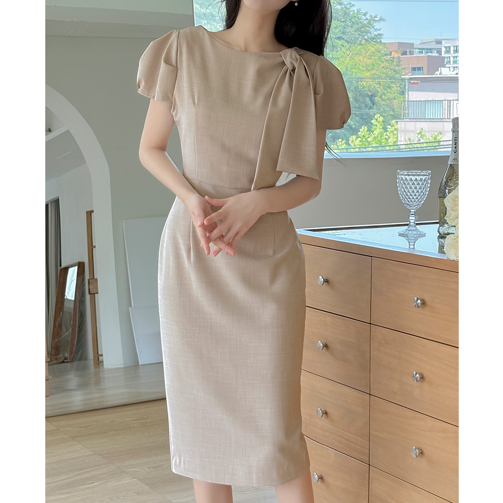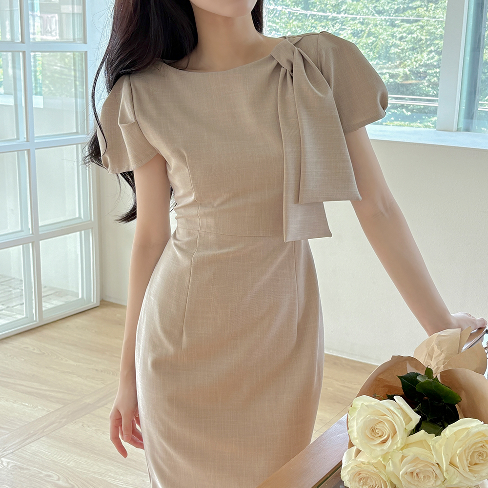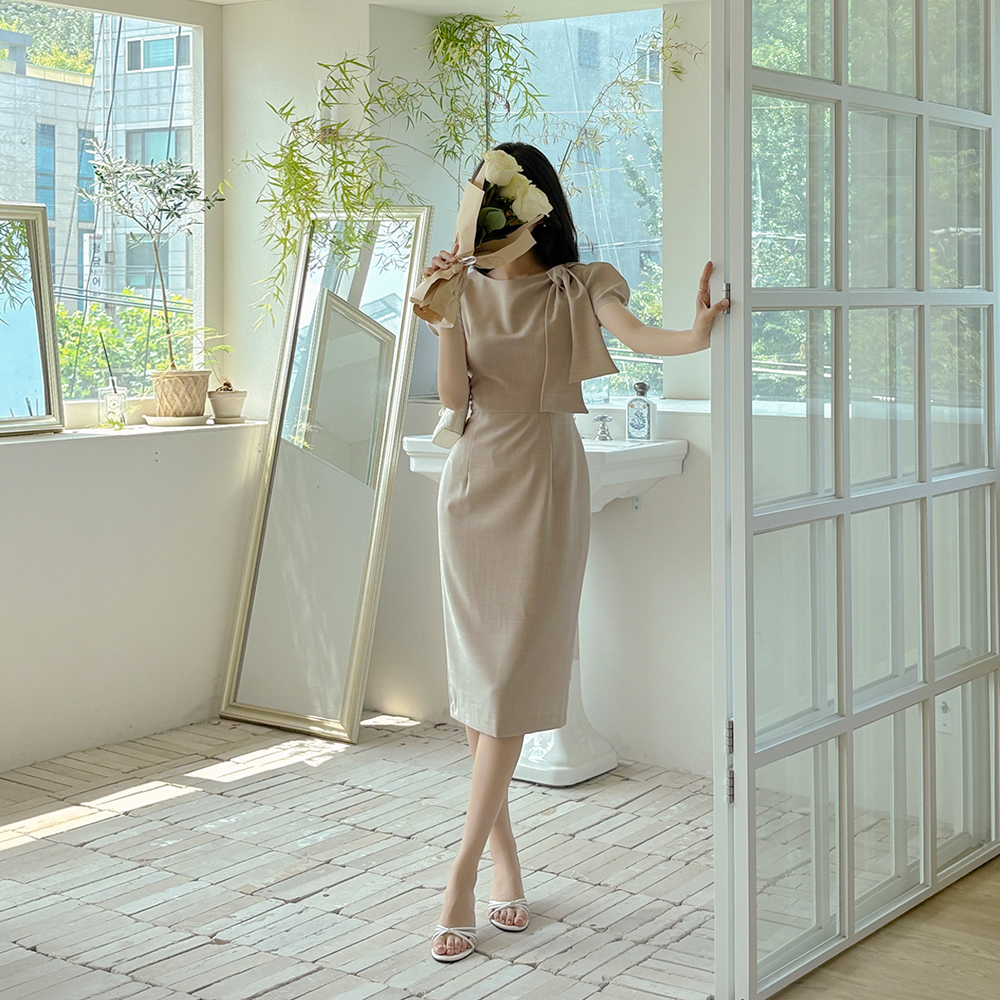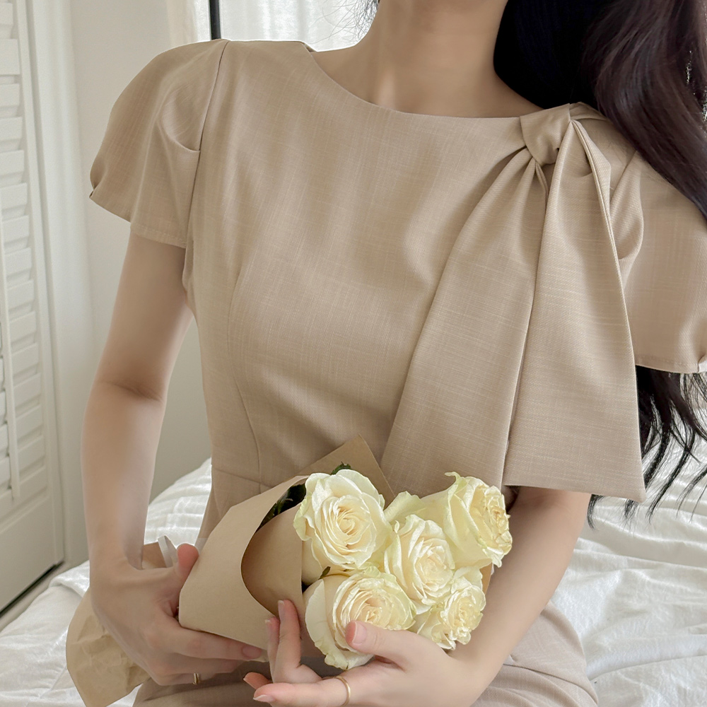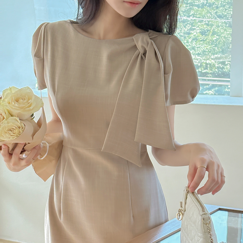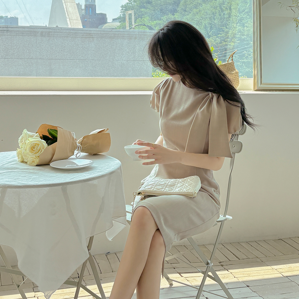 劳拉 蝴蝶结领口 H字型 连衣裙