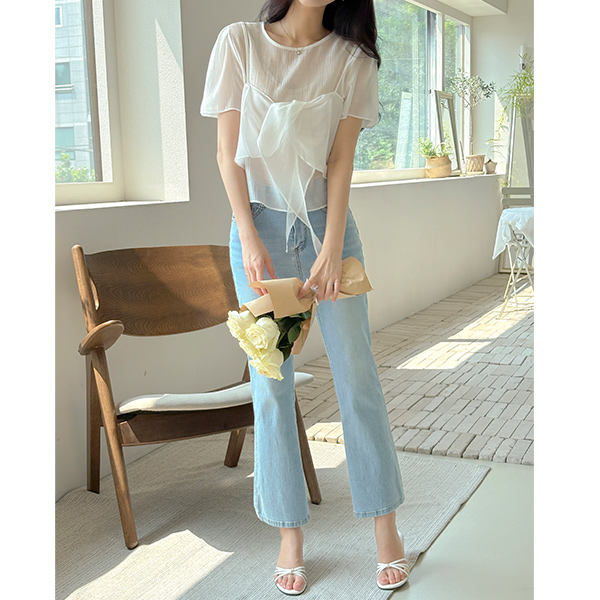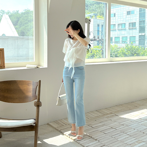 空气 凉爽 柔丝 麻糬 喇叭 牛仔色 裤子
