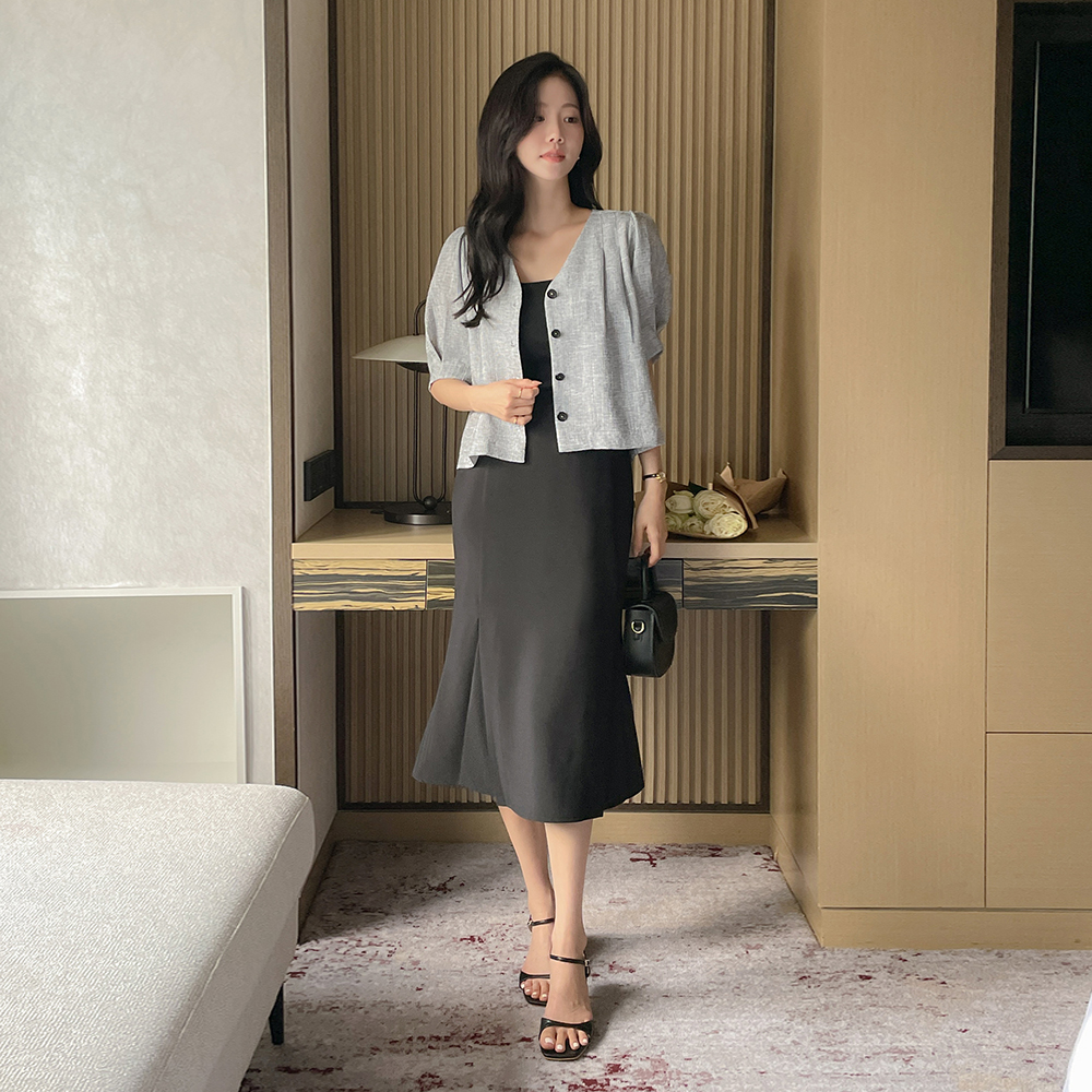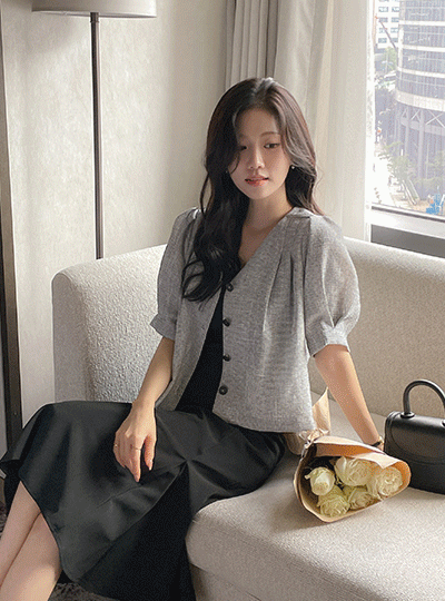 奥黛丽 V领 细褶 泡泡袖 粗呢 夹克