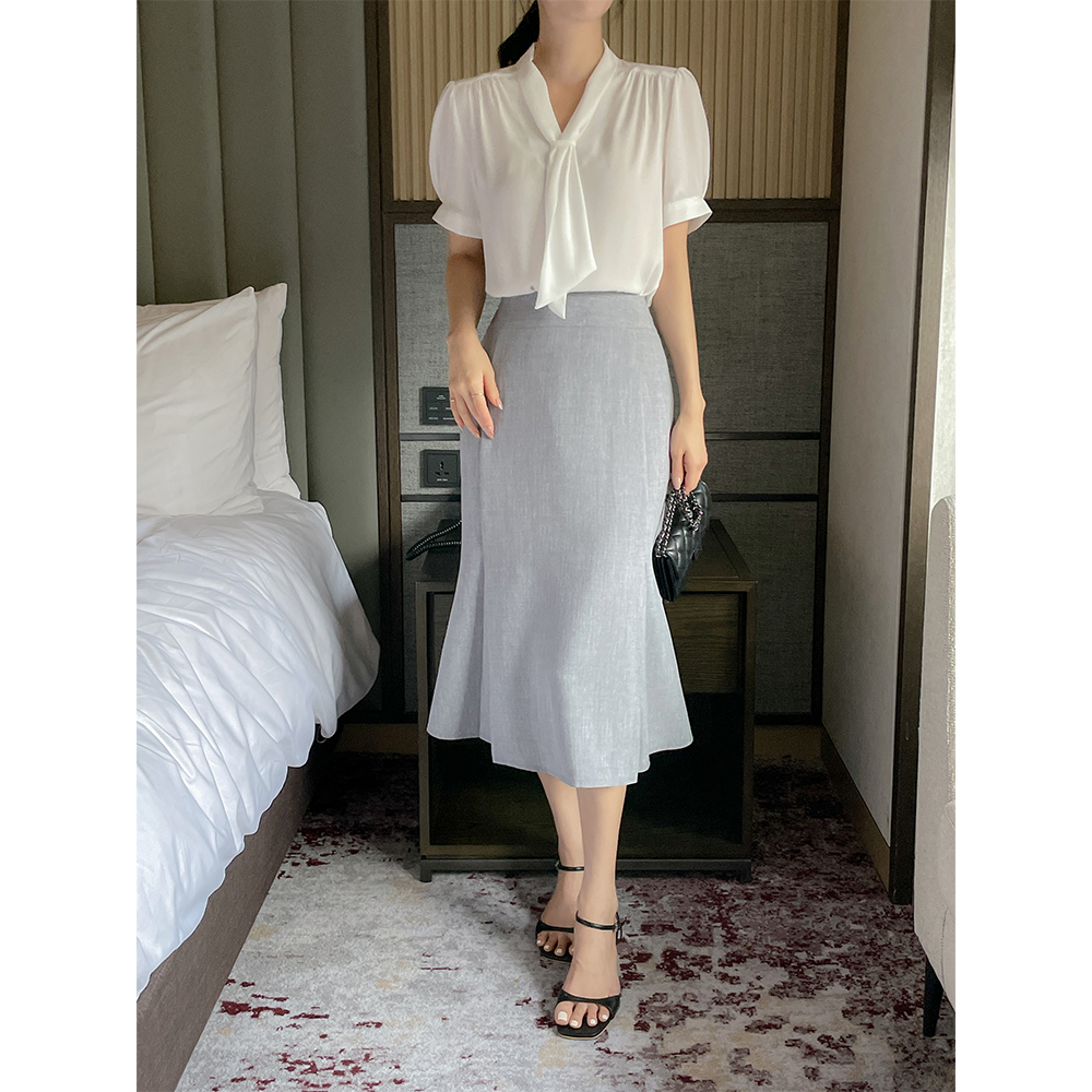 软绵绵软的 环 领带 5分 袖 罩衫