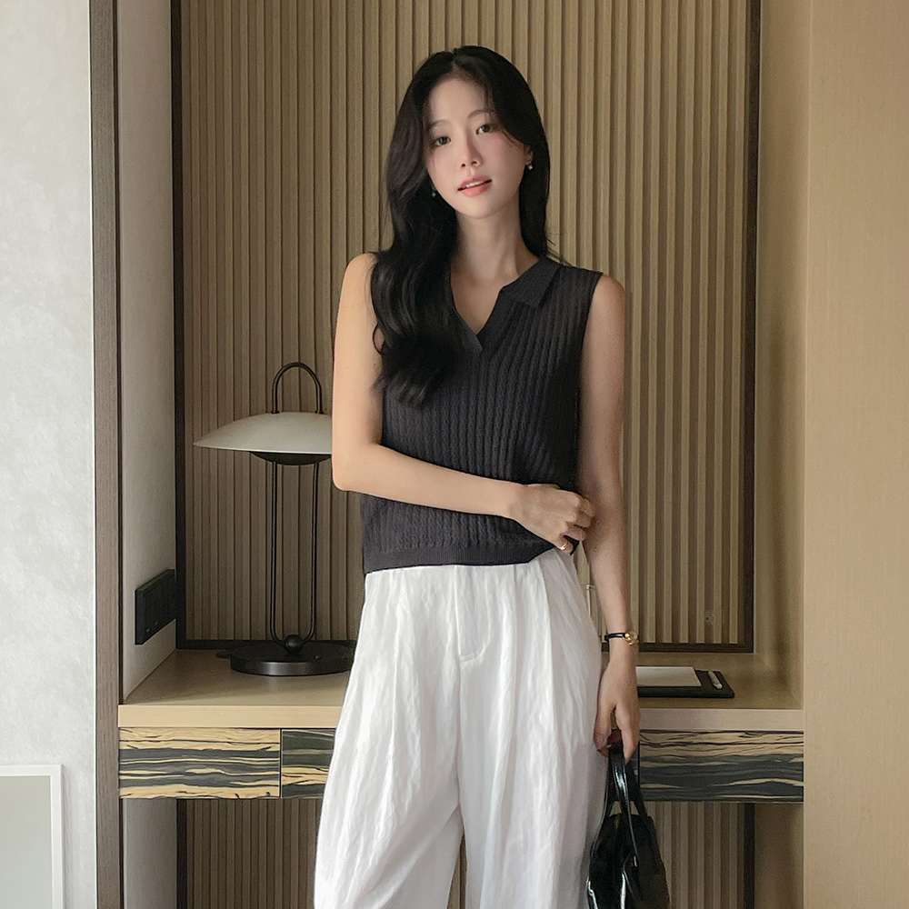 直筒 领口线 帽檐 내장 条绒 背心T恤