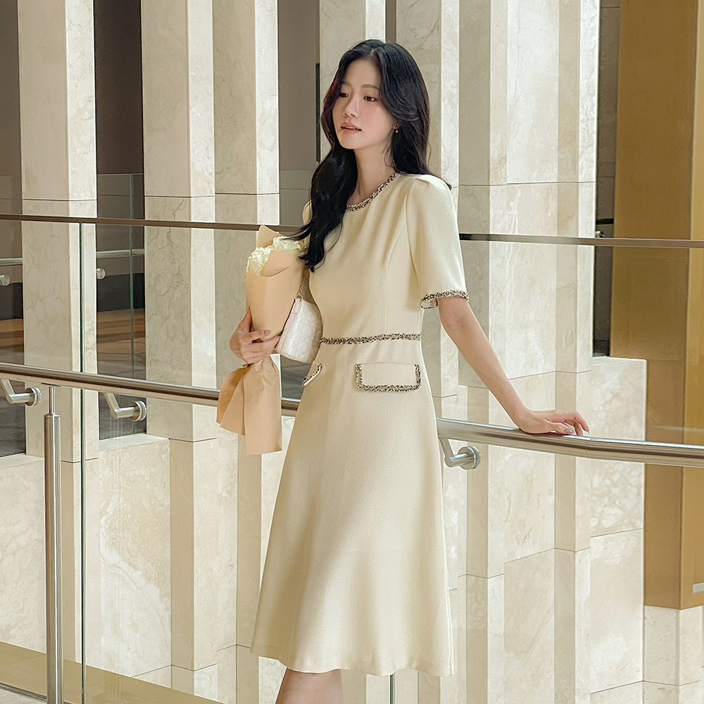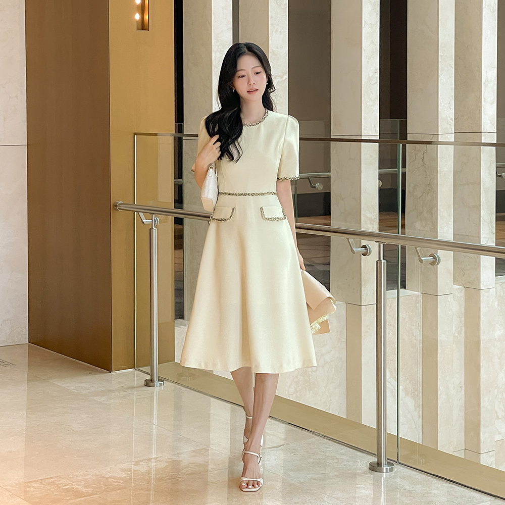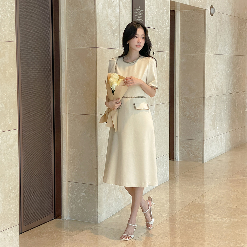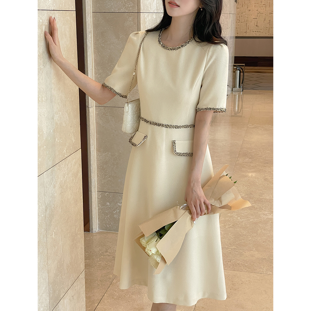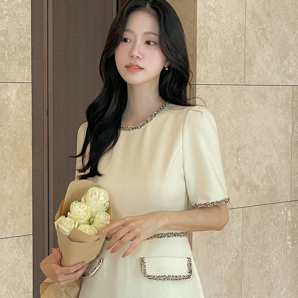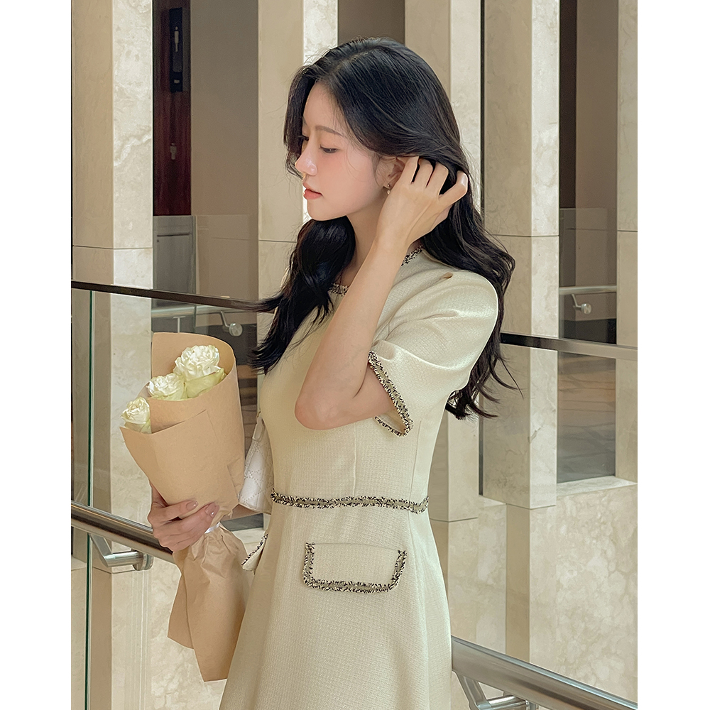 穗饰 配色 点缀 A字型 粗呢 连衣裙