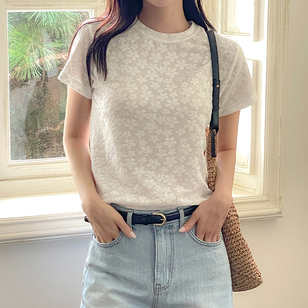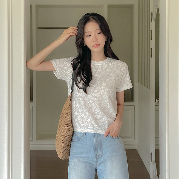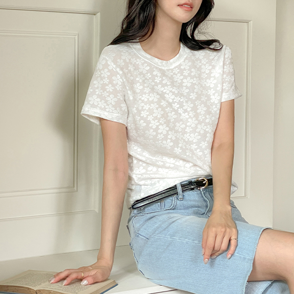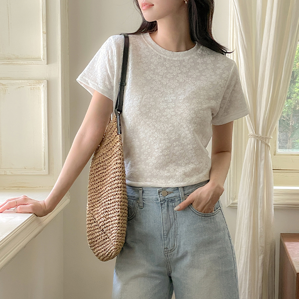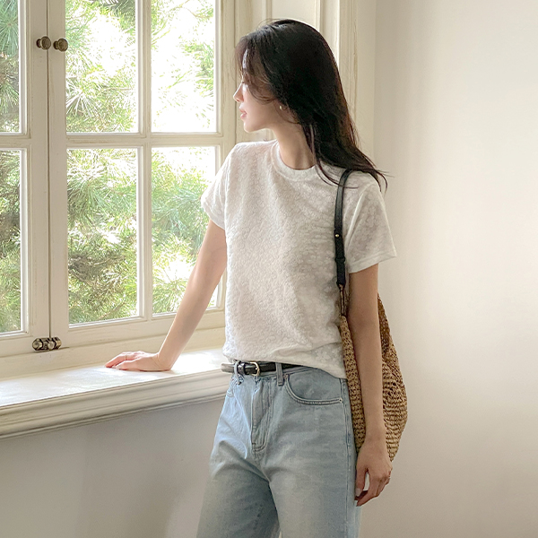 圆领 花纹 浮雕 T恤衫