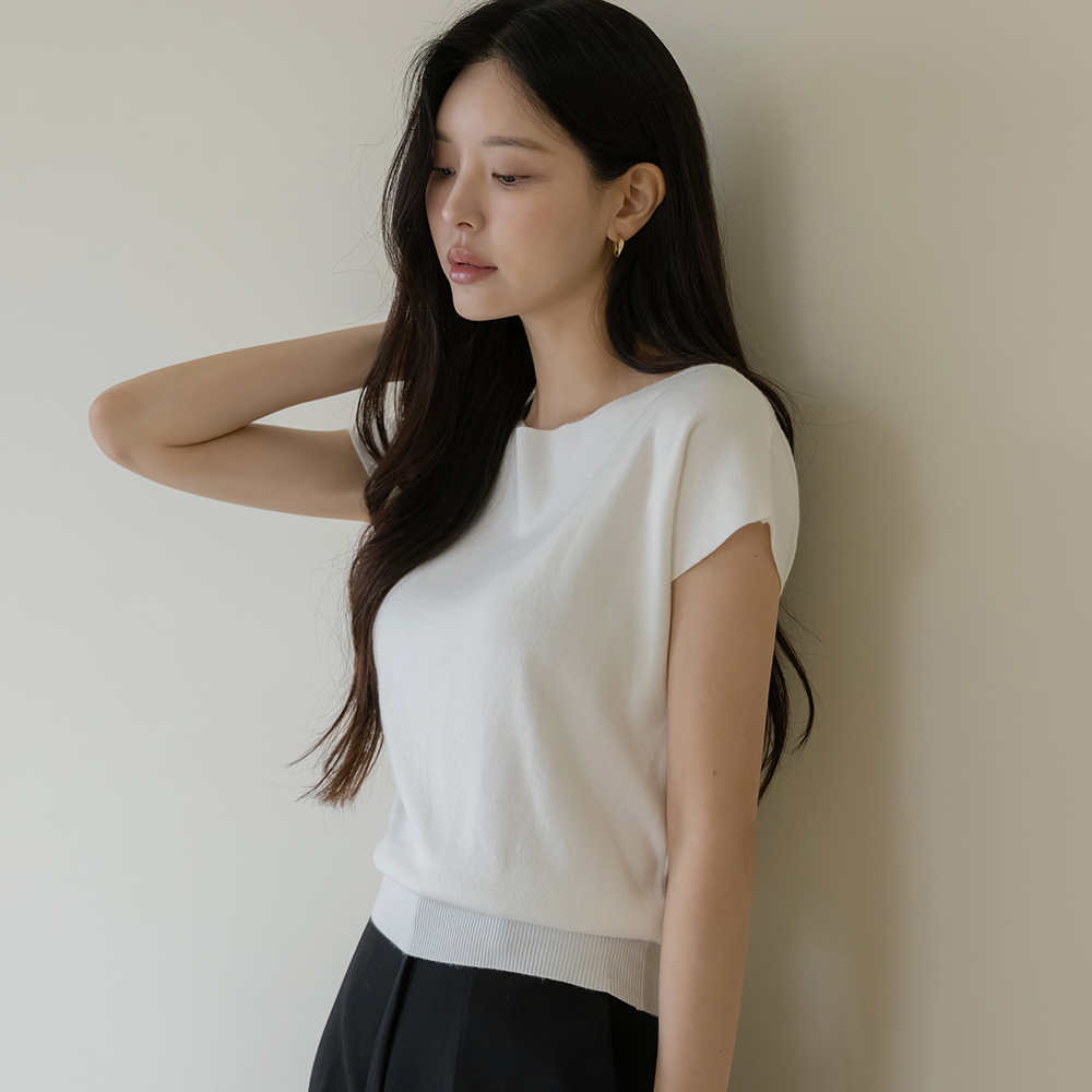 柔软的 嘴唇领 帽檐袖 针织衫