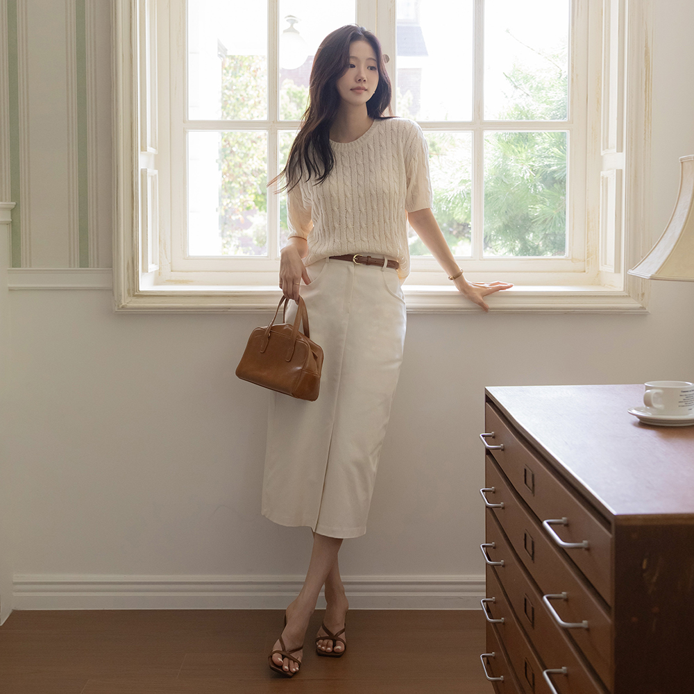 日常 棉 前面开叉 弹力 H字型 裙子