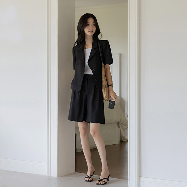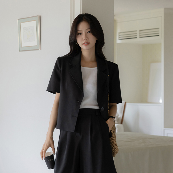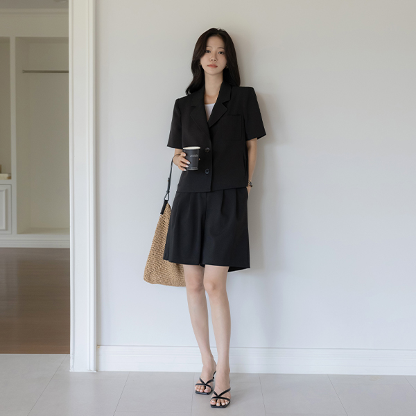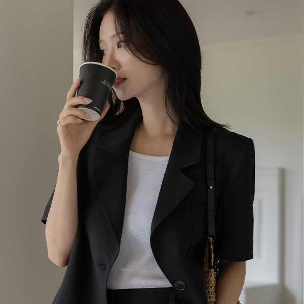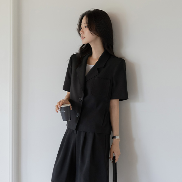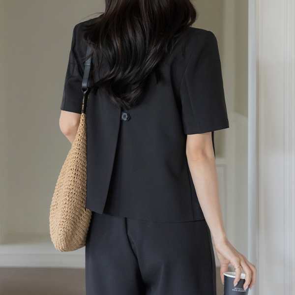 露西 翻领 后侧纽扣 开叉 Set-up 夹克