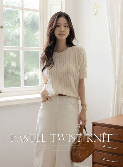柔色 圆领 麻花 短袖 针织衫