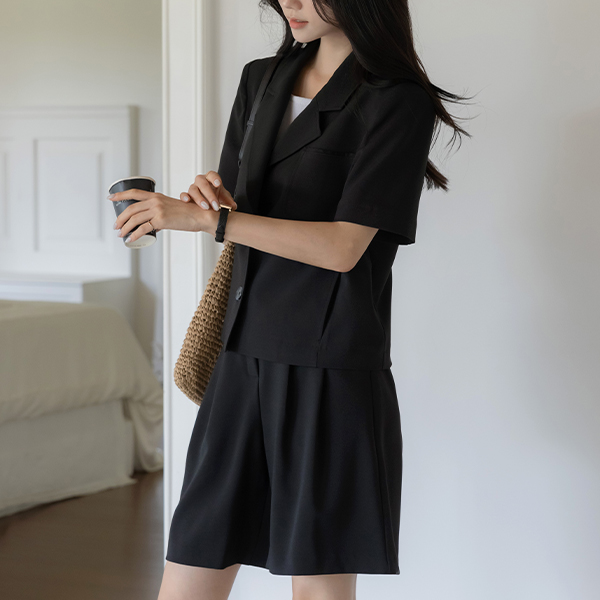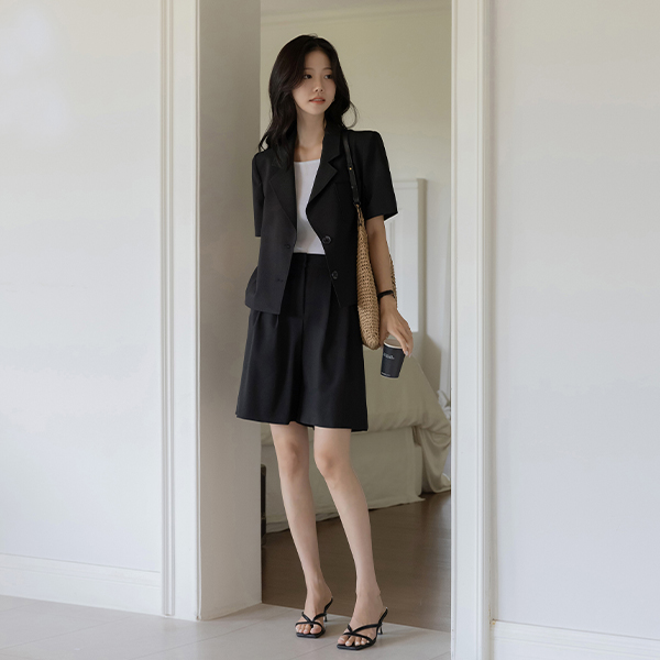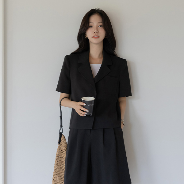 露西 翻领 后侧纽扣 开叉 Set-up 夹克