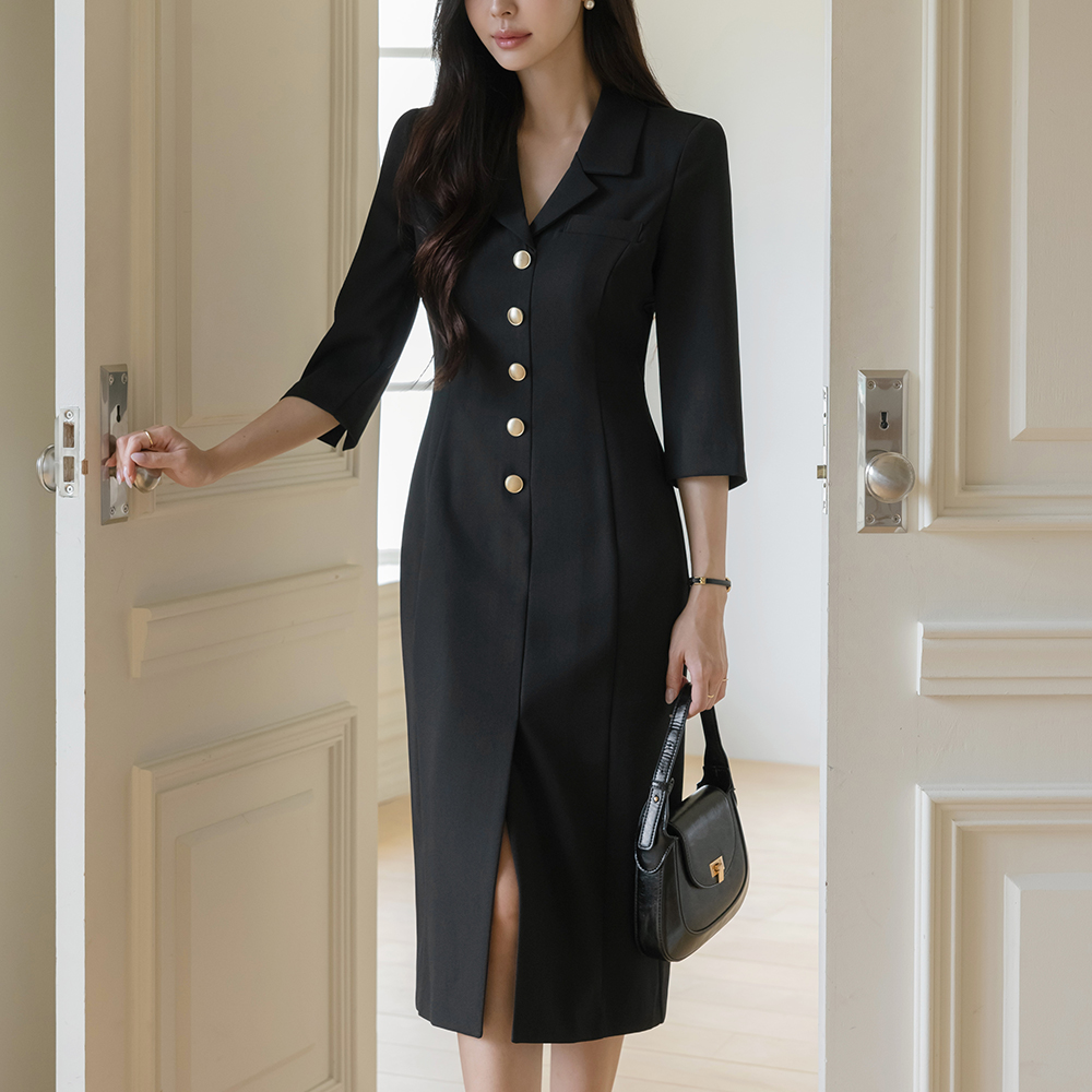 雷纳 摩登 开衩 H字型 连衣裙