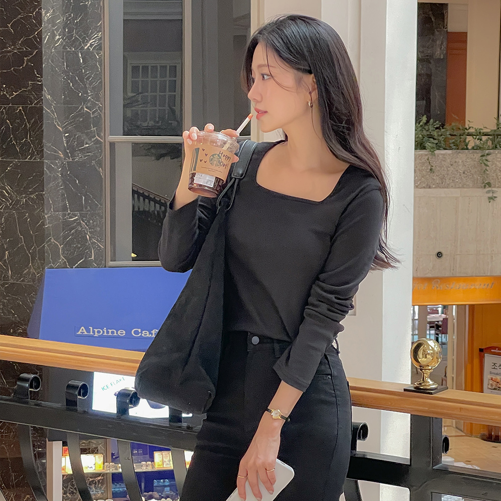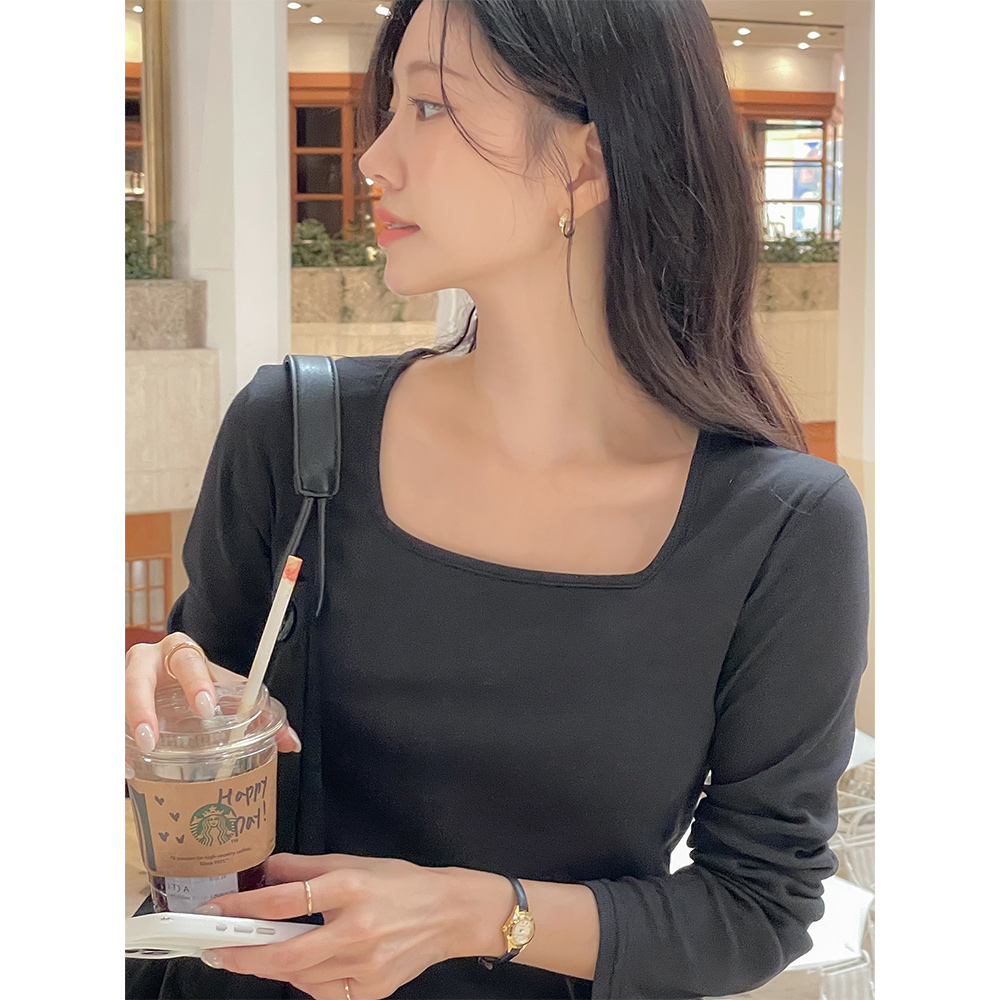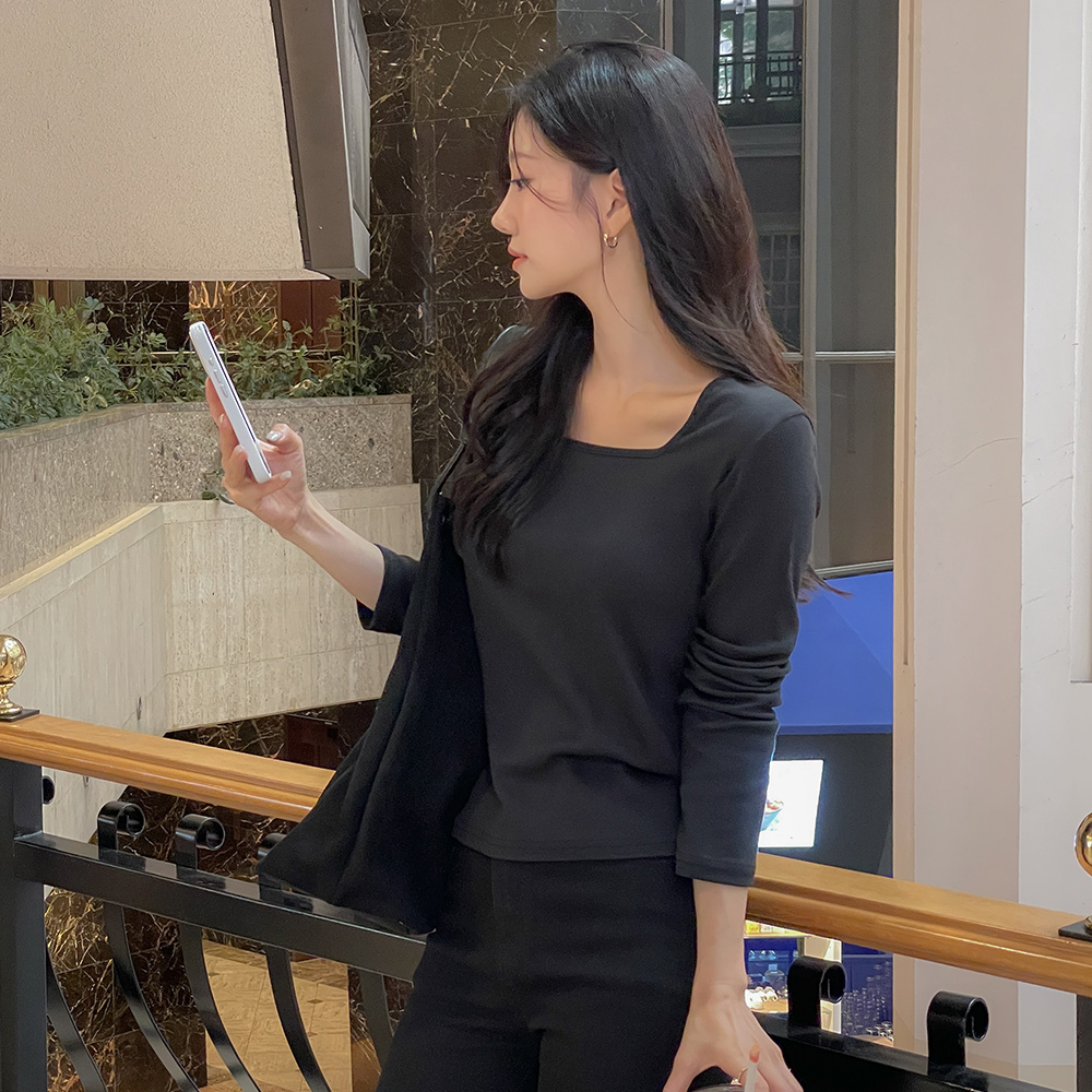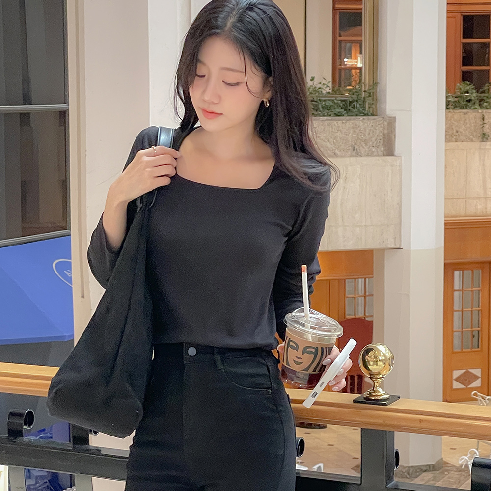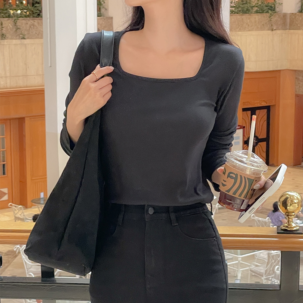 日常 方领 棉 莫代尔 T恤衫