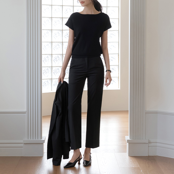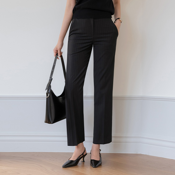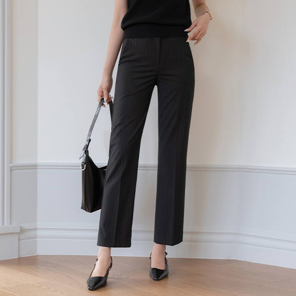 红宝石 条纹 一字型 Set-up 宽松长裤