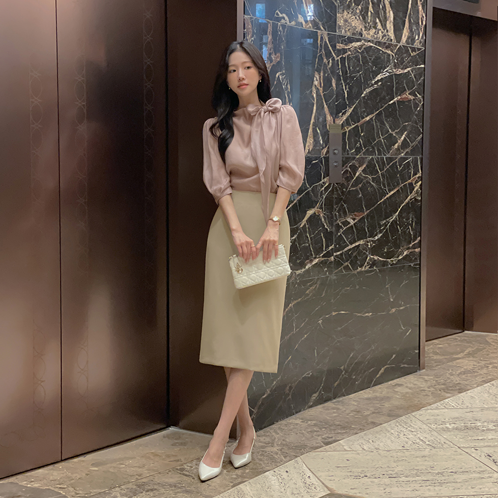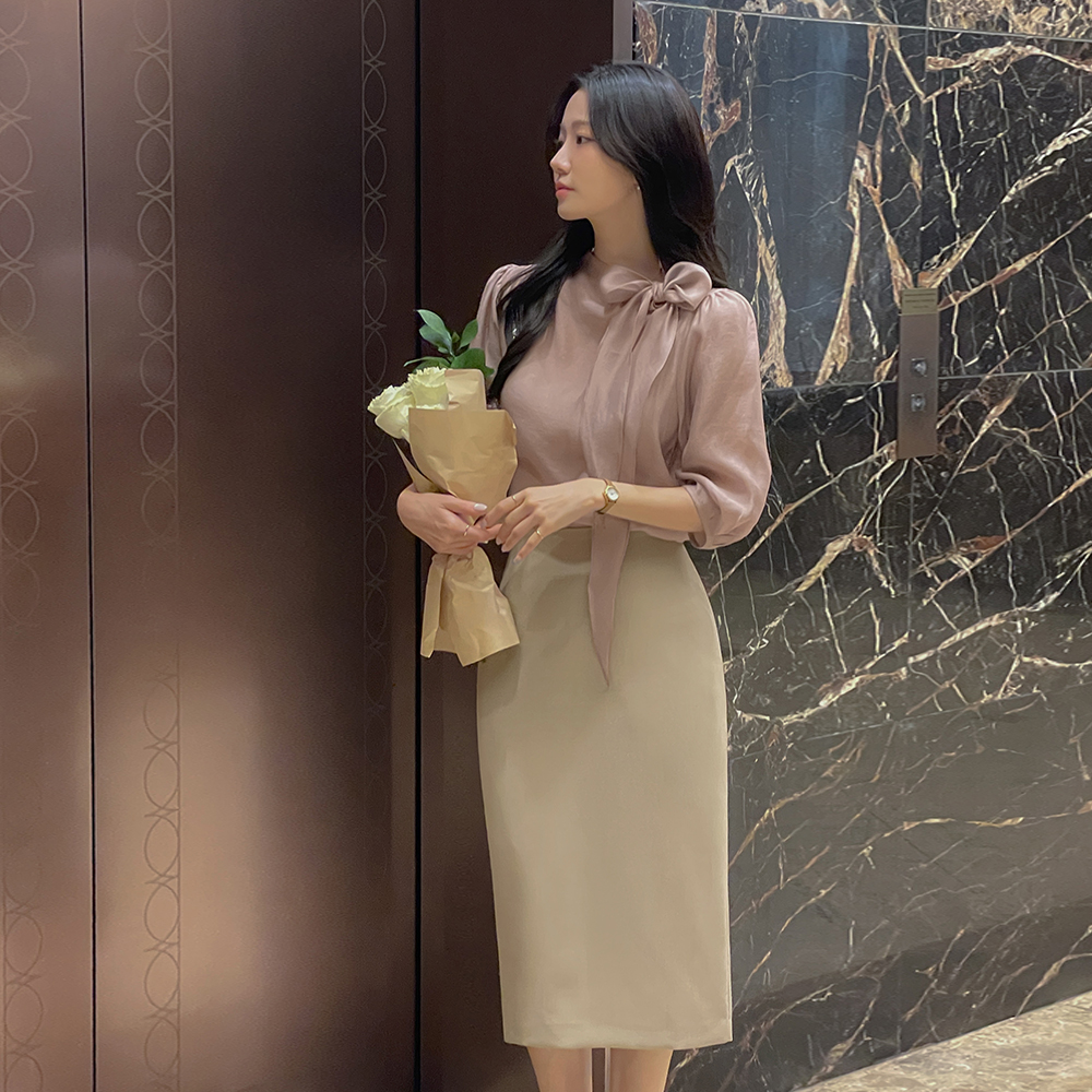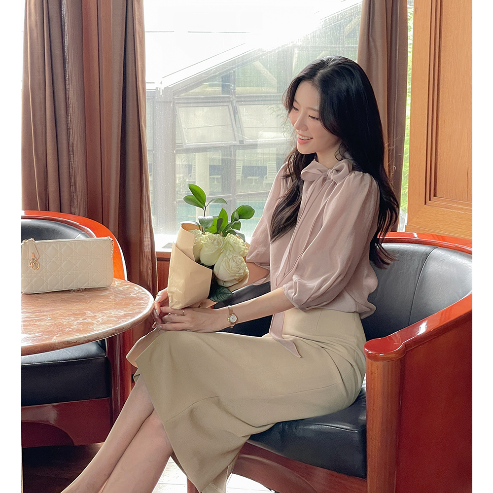 浪漫 天丝 蝴蝶结领口 7分 罩衫