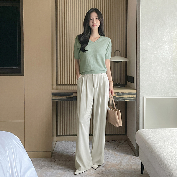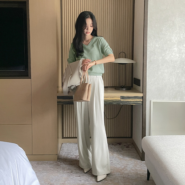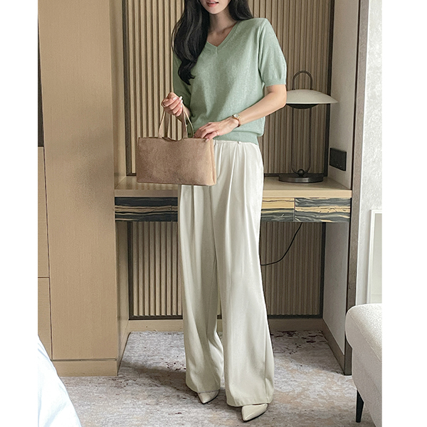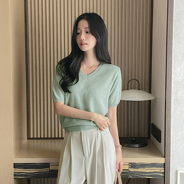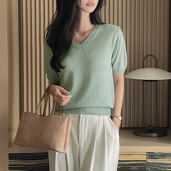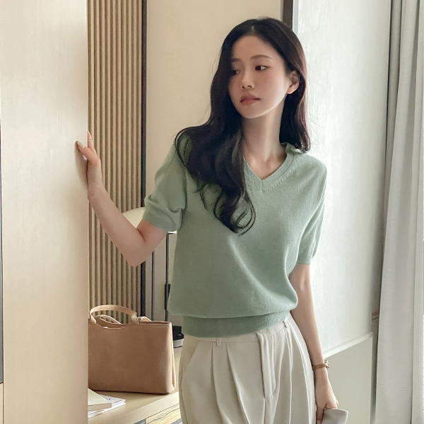 羊绒&羊毛 V领 短袖 针织衫