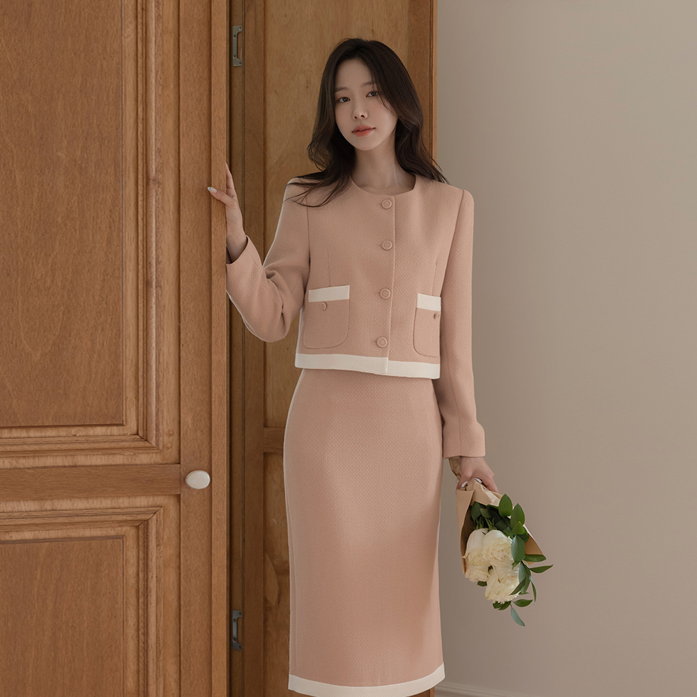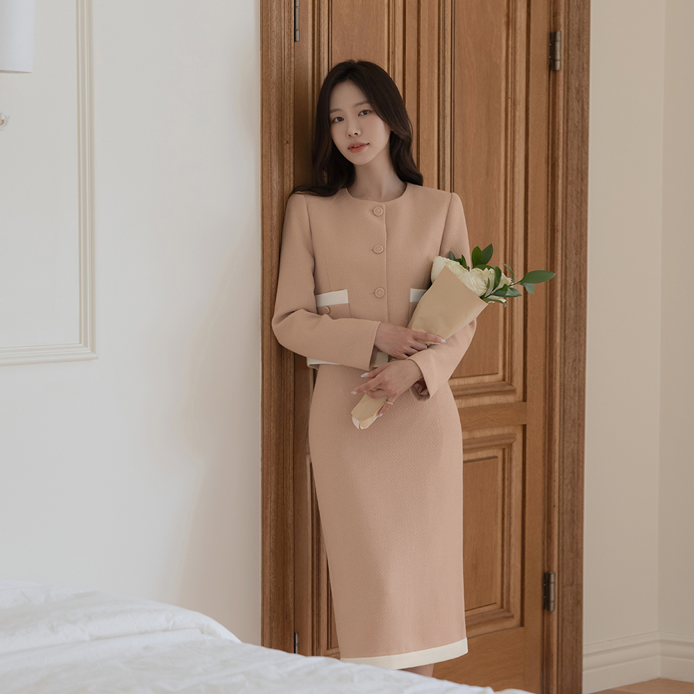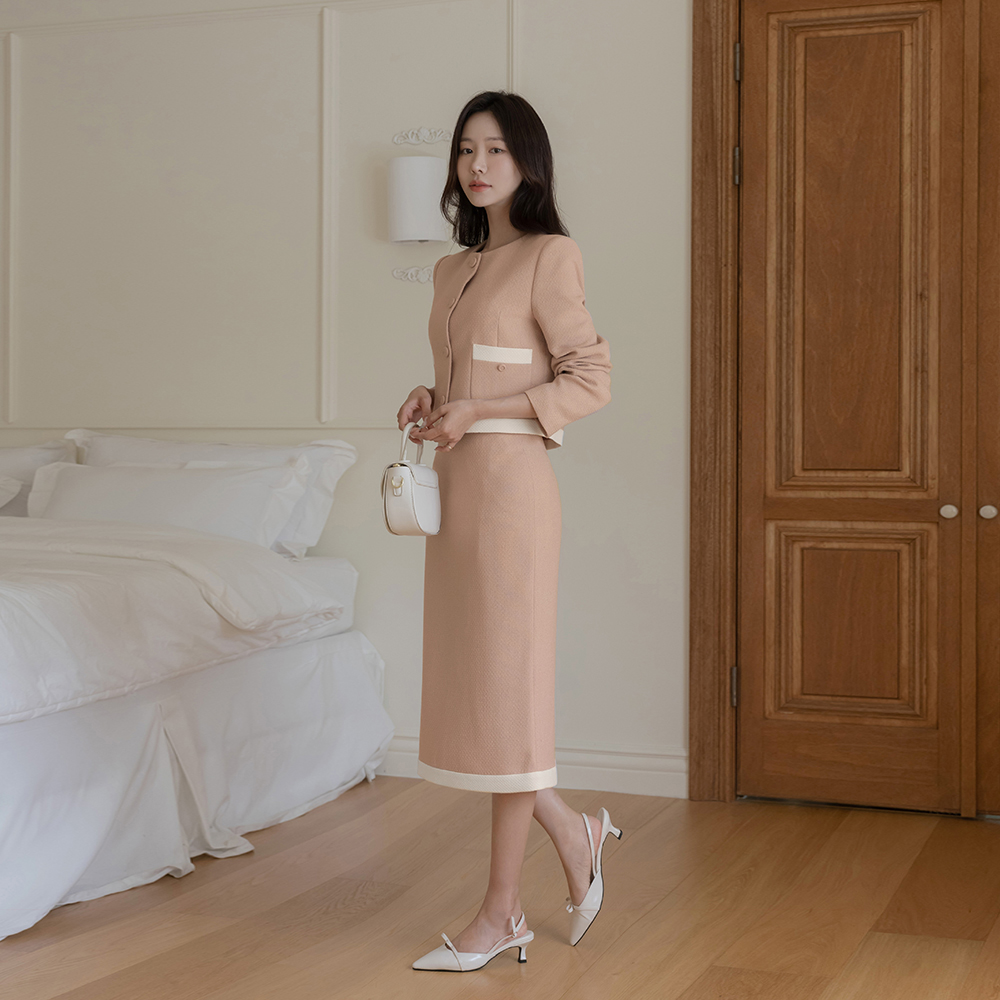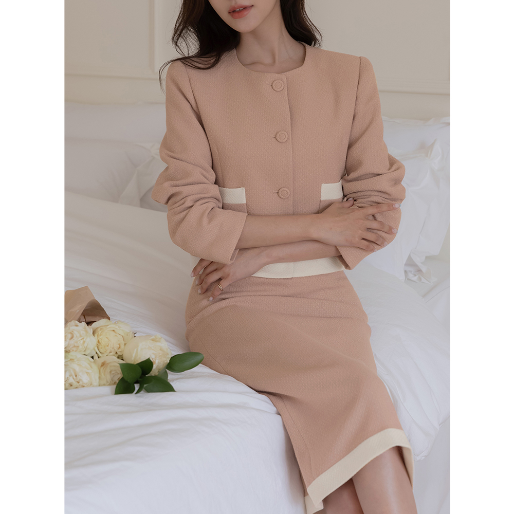 ODE 配色 粗呢 H字型 Set-up 裙子