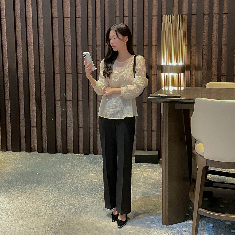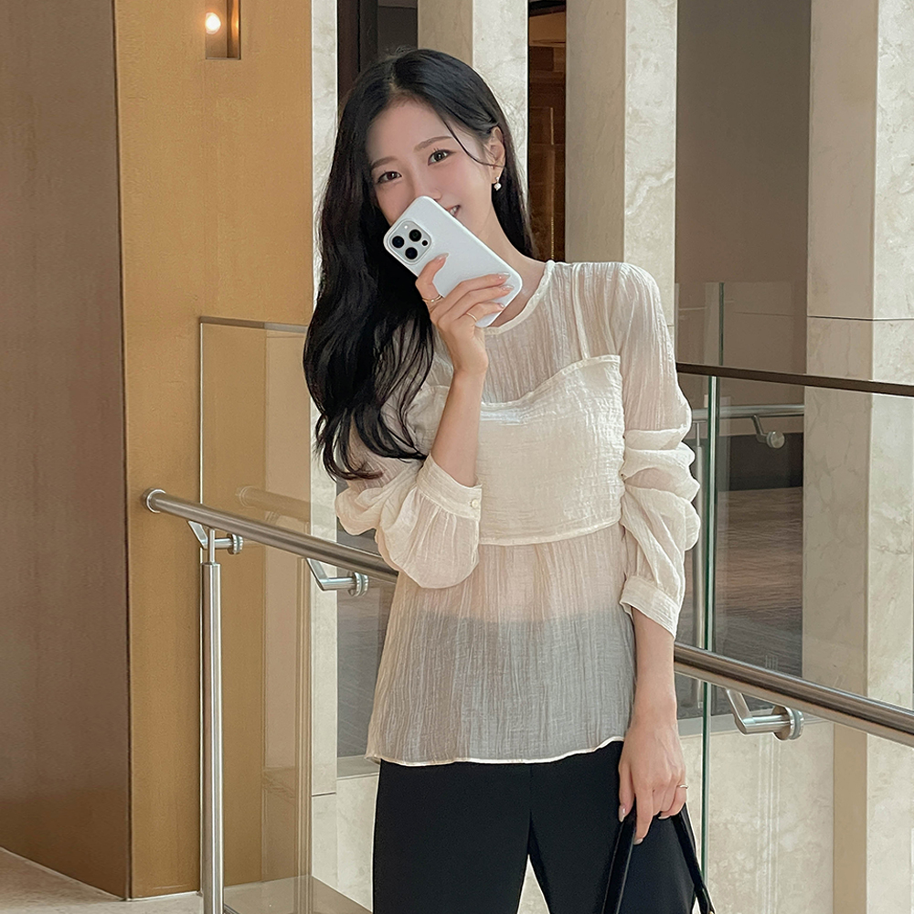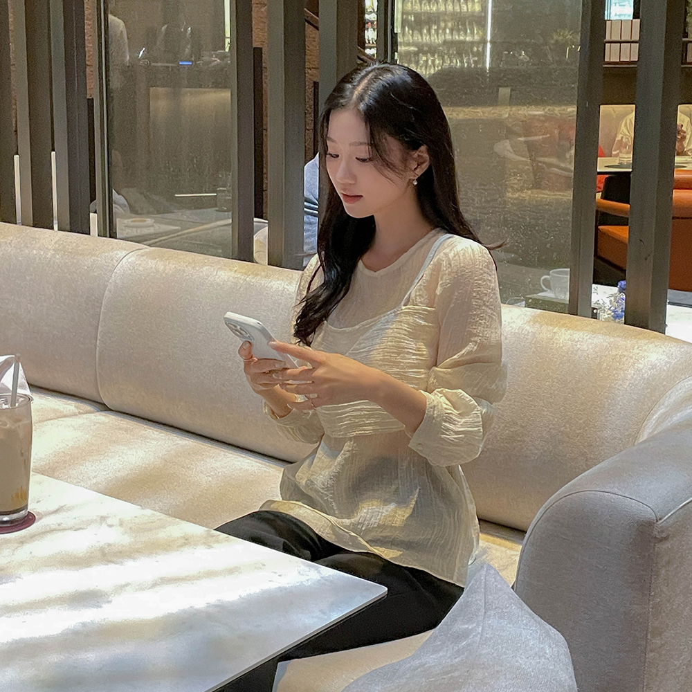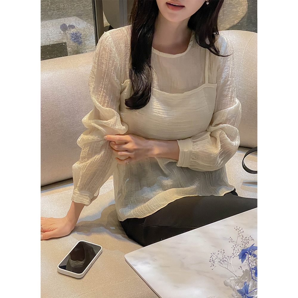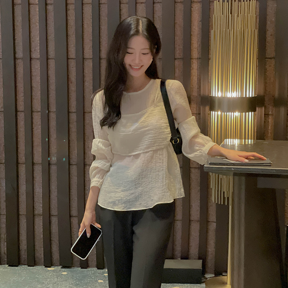 去皱纹 吊带 分层 风格 罩衫
