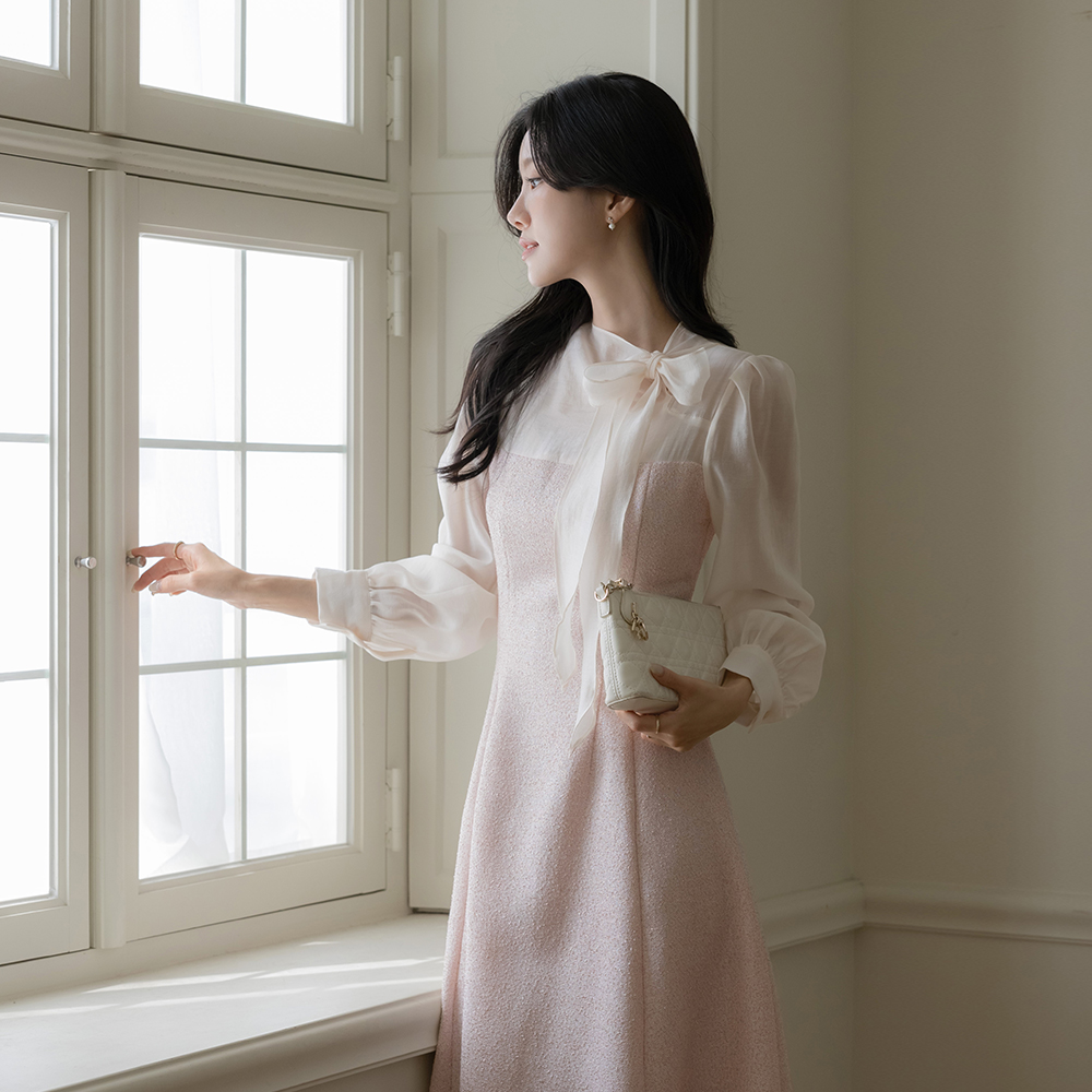 Merry 领带 配色 粗呢 连衣裙