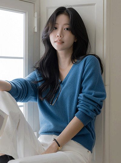 颜色 V字领 Whole Garment 羊毛 针织衫