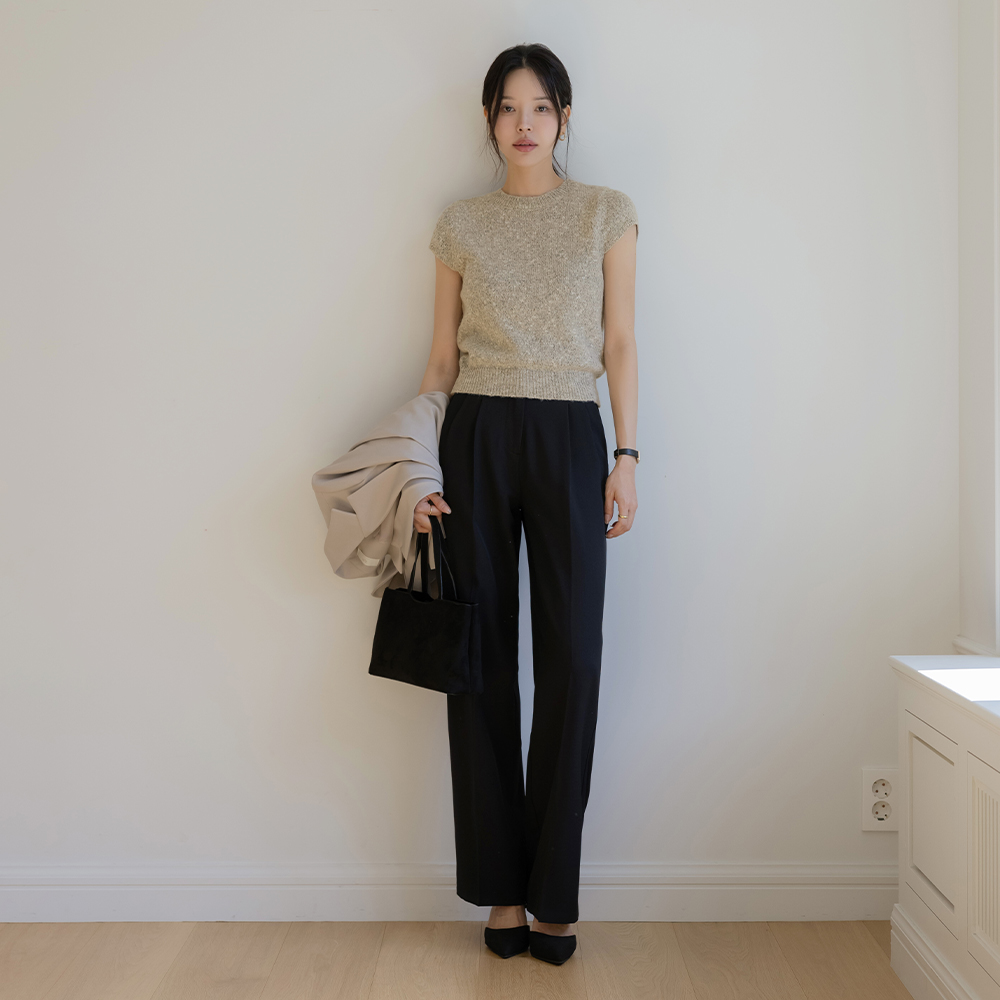 圆领 混合 帽檐袖 短袖 针织衫