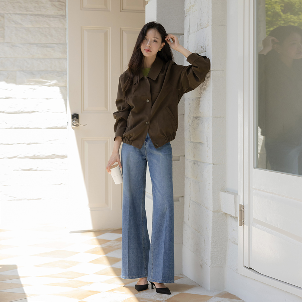 水洗 口袋 点缀 커버핏 牛仔色 裤子