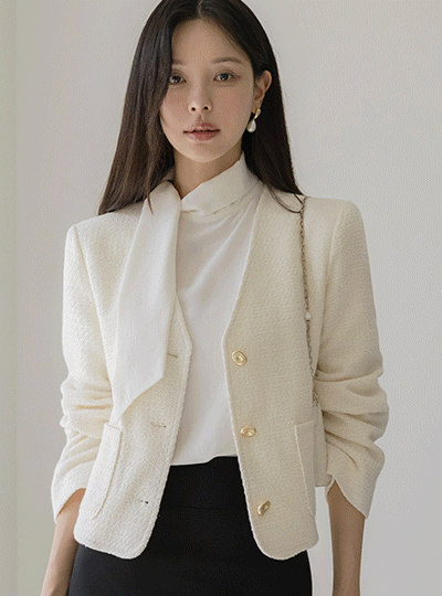 闪亮 无领 黄金 扣子 粗呢 夹克
