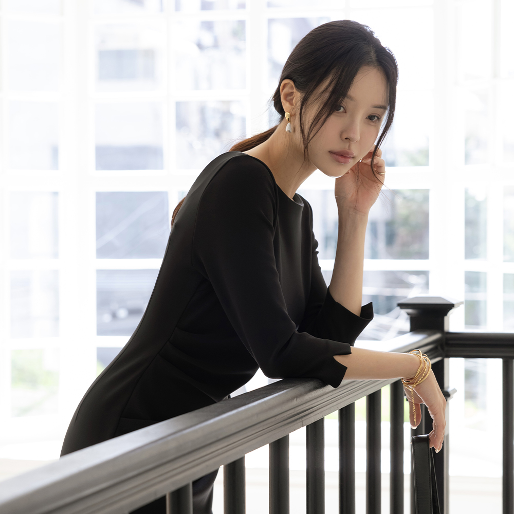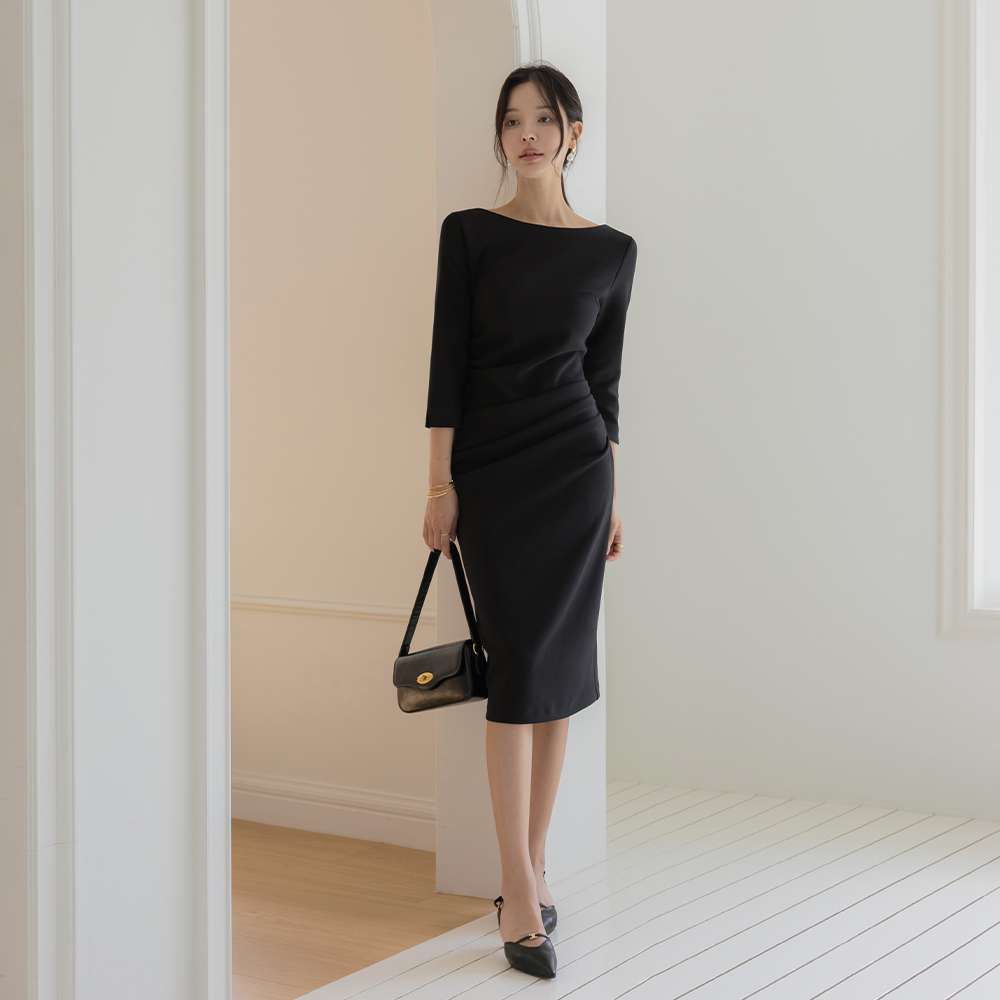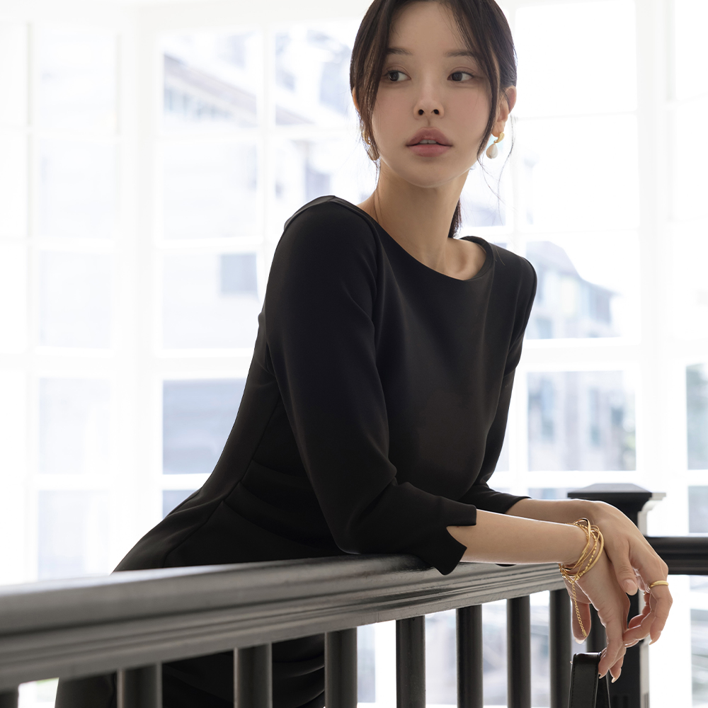 [O:neul] 覆盖 褶皱 여리넥 热爱 弹力 连衣裙