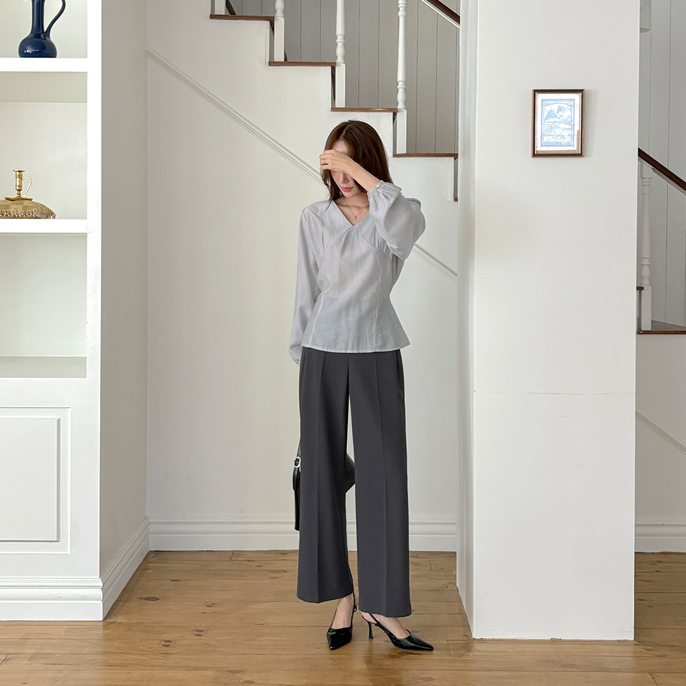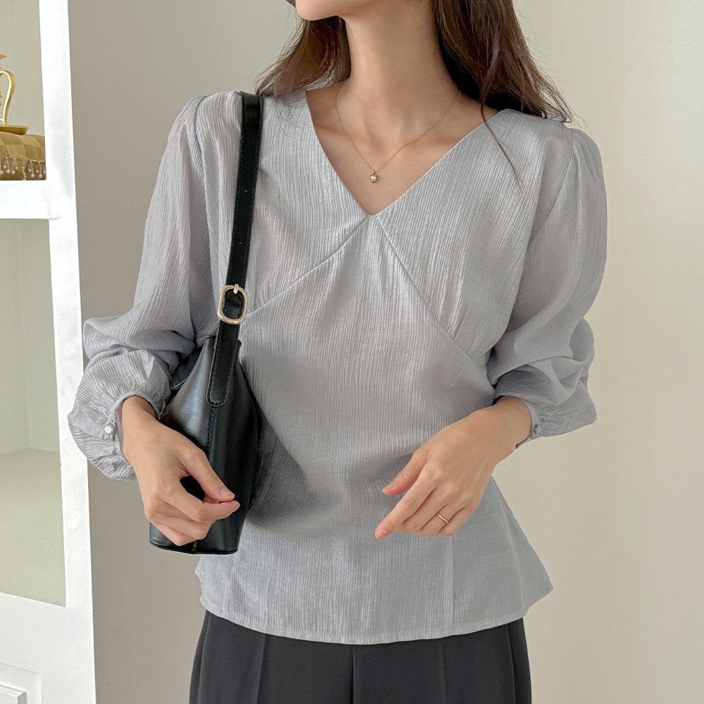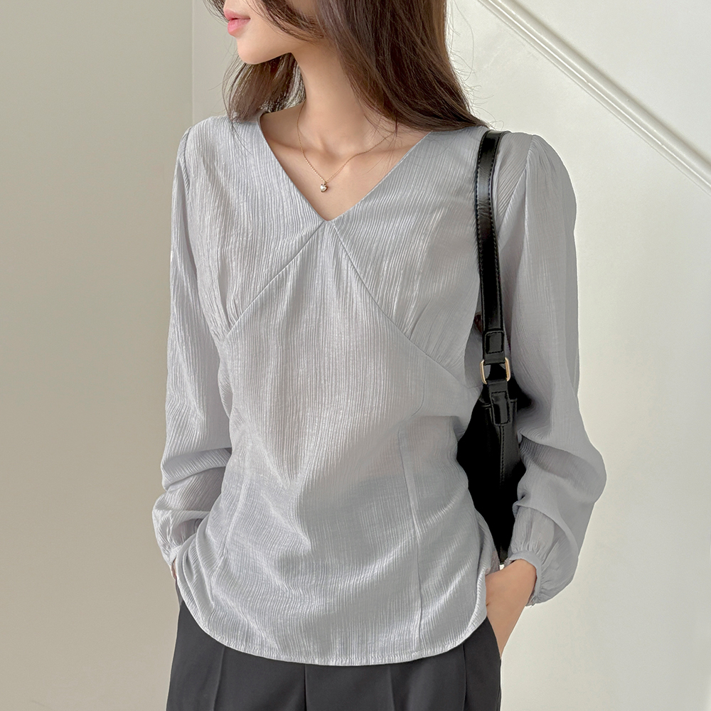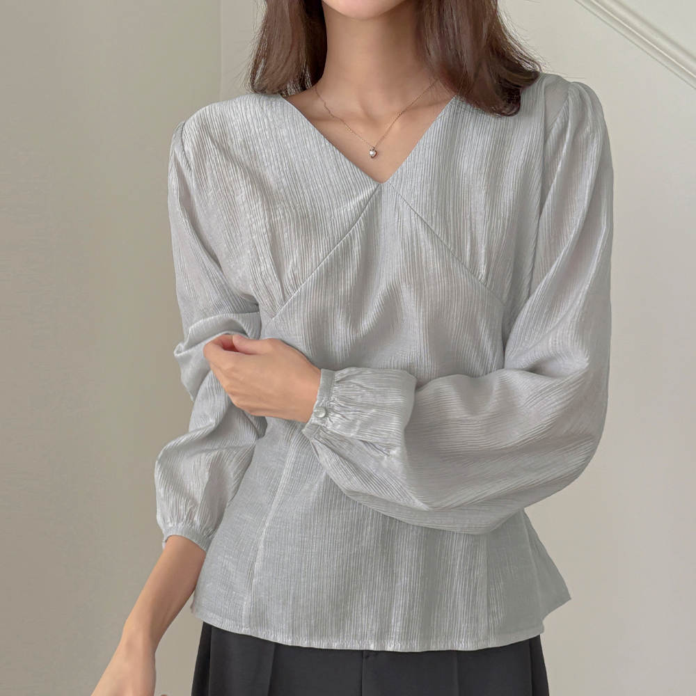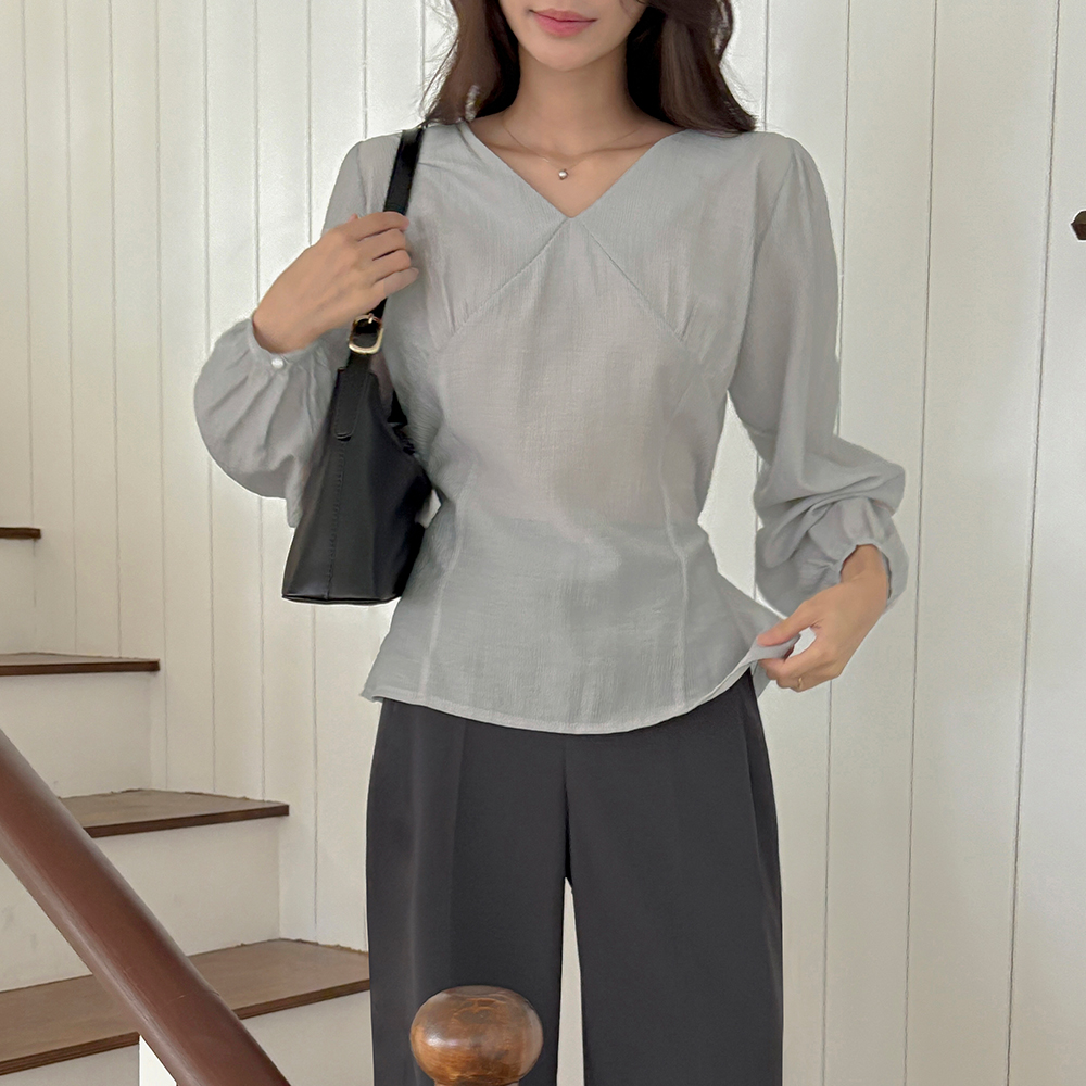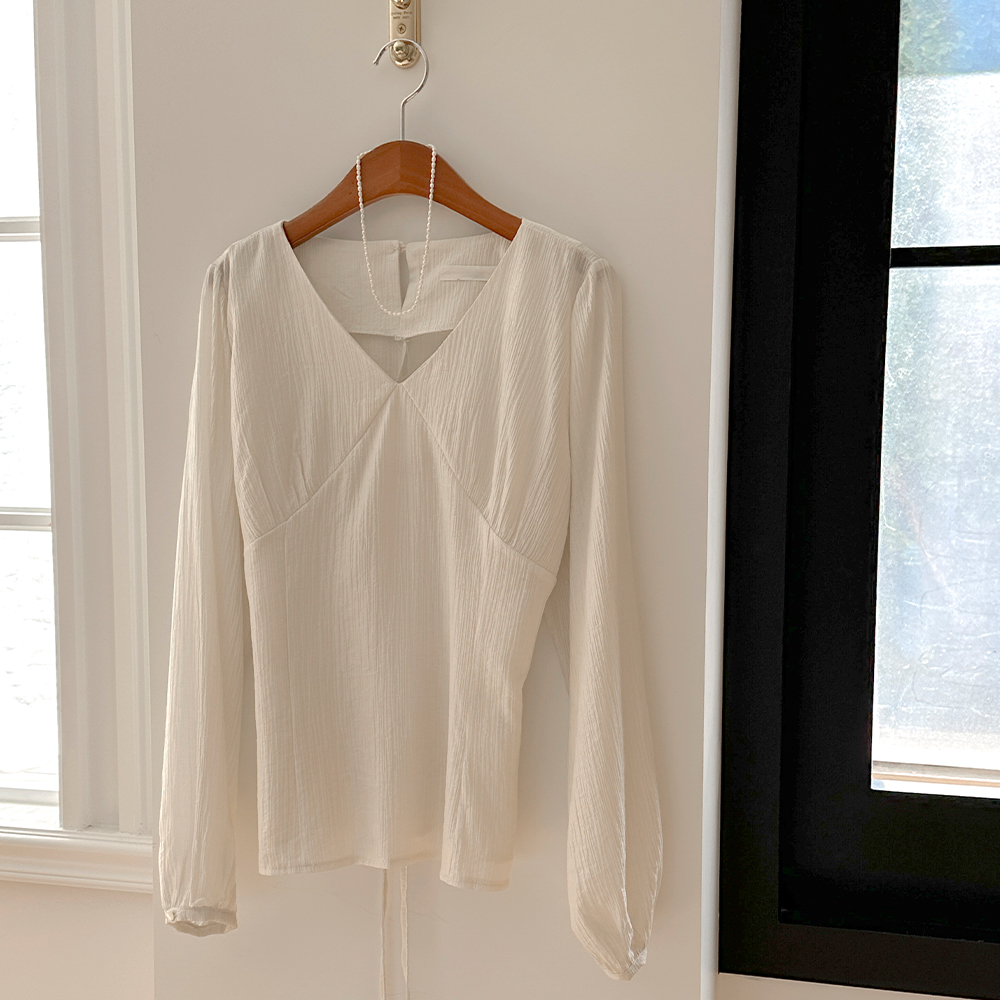 开叉 V领 后面蝴蝶结 长袖 罩衫
