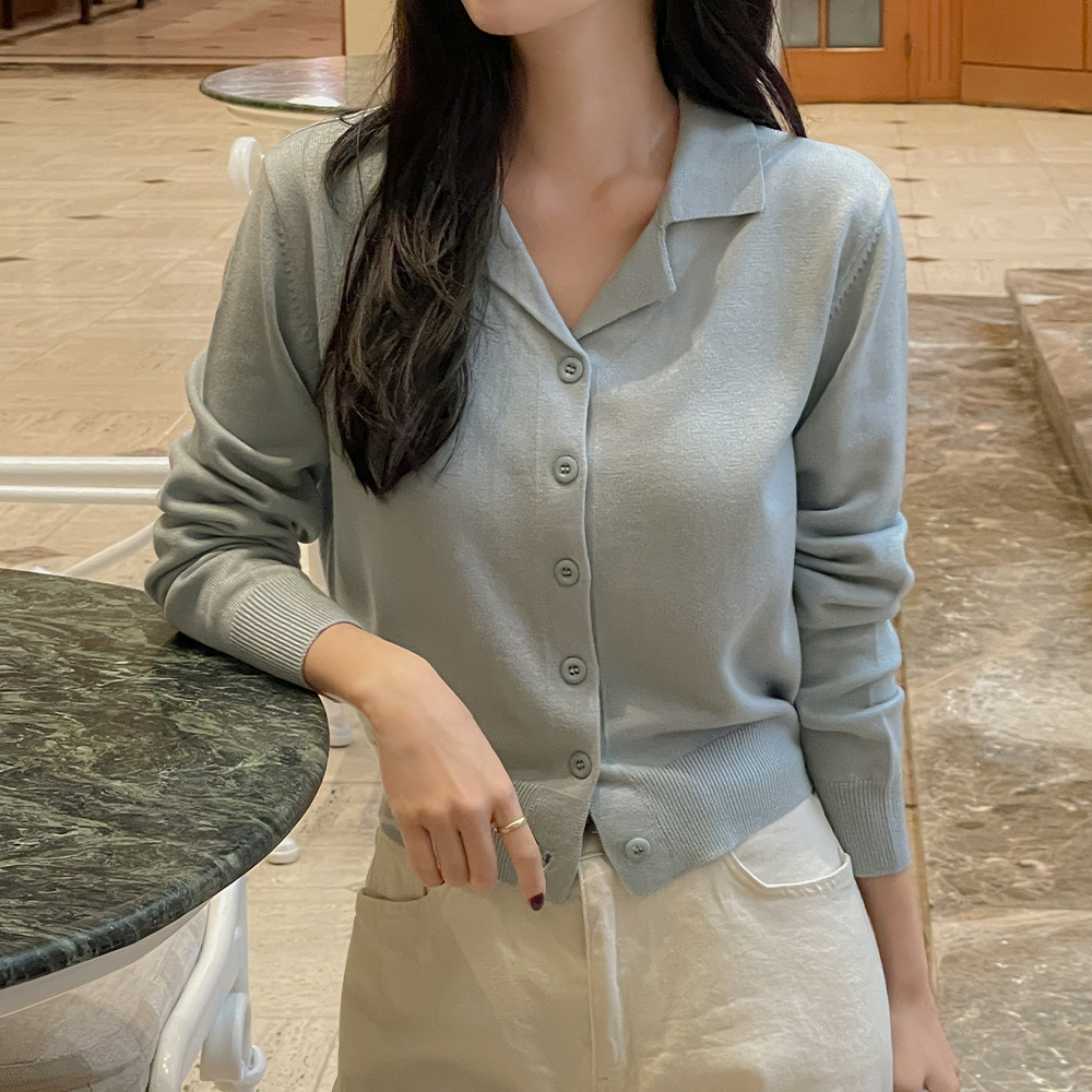 糖 翻领 羊毛 针织衫 开衫