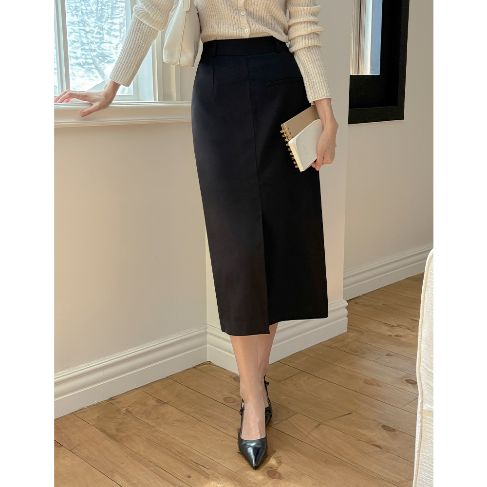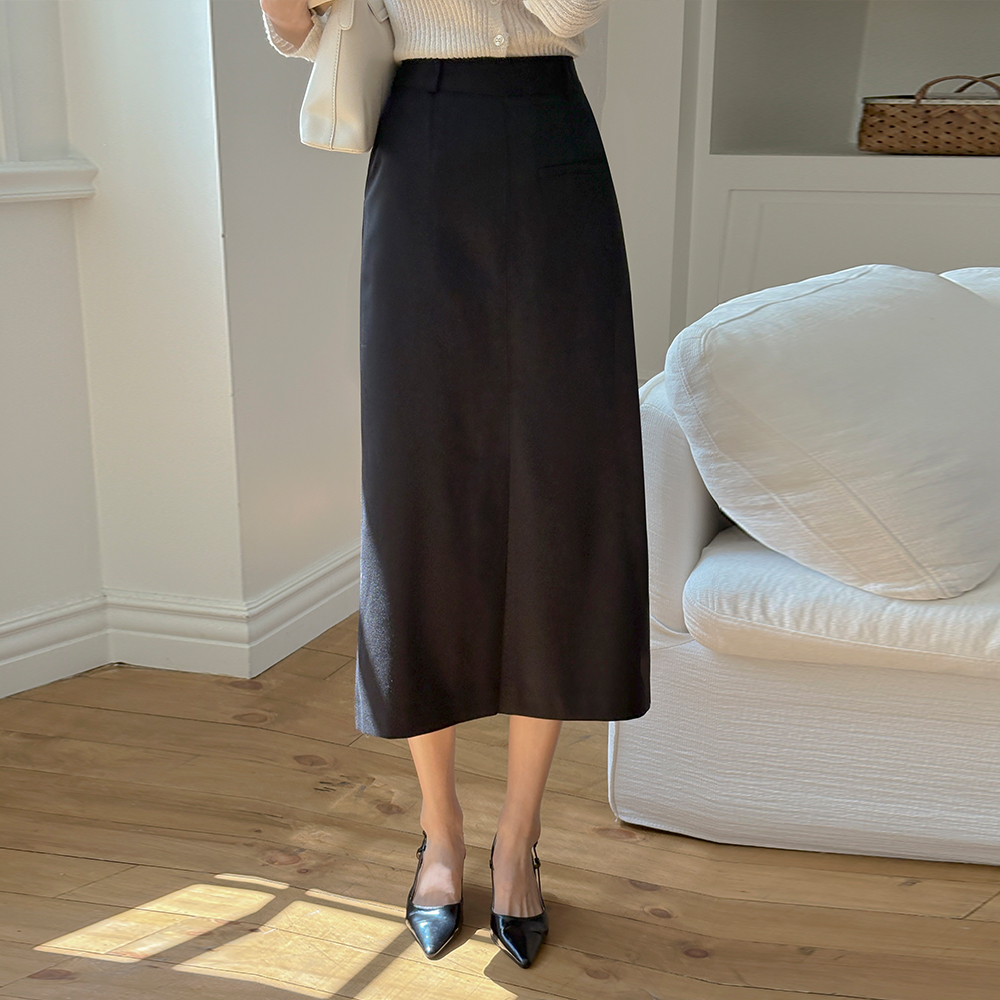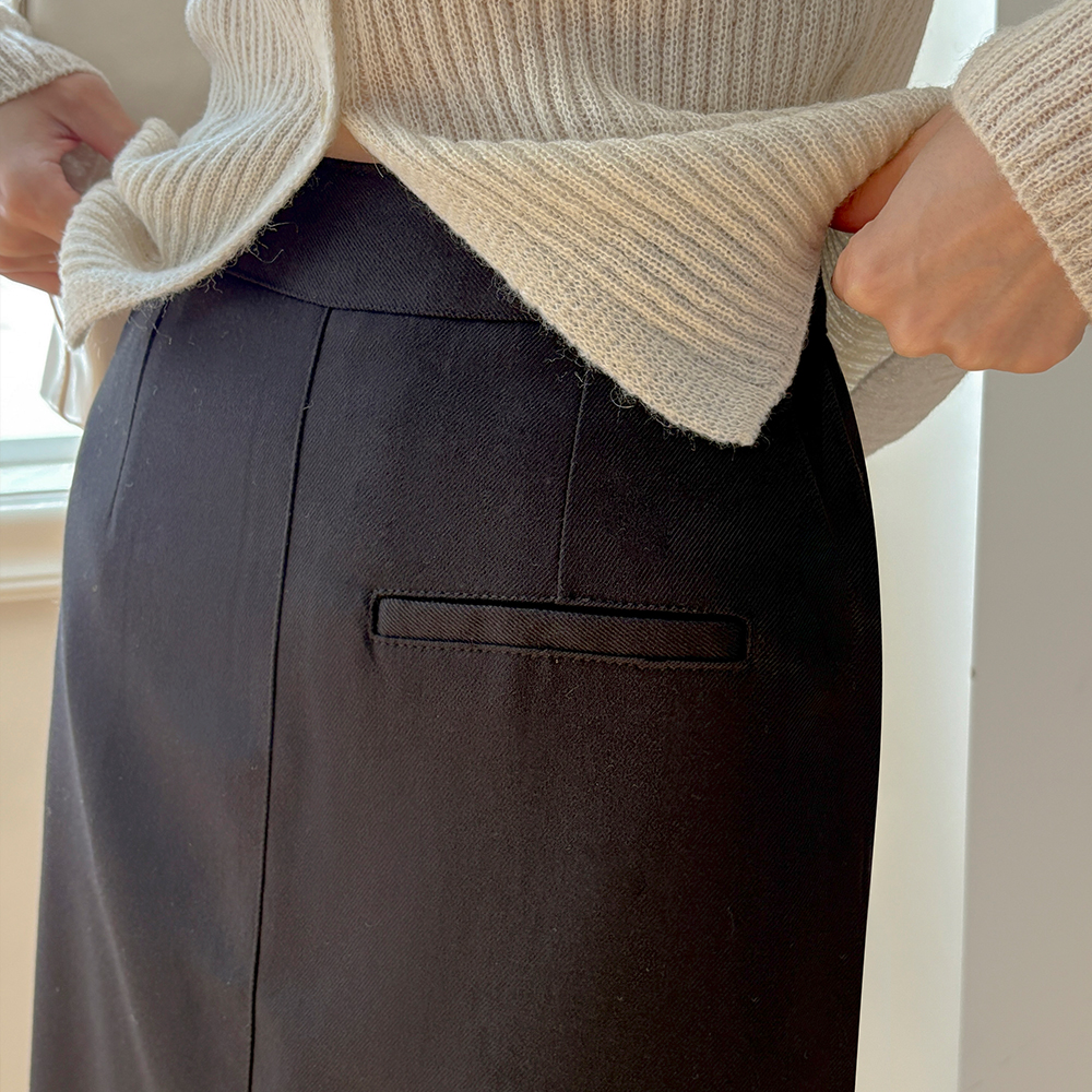 口袋 点缀 开衩 H字型 裙子