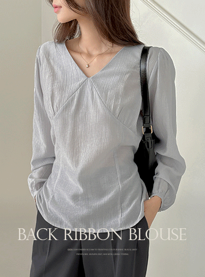 开叉 V领 后面蝴蝶结 长袖 罩衫