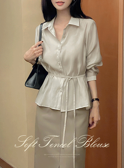 柔丝 天丝 翻领 罩衫(+腰带)