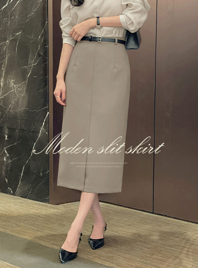 摩登 前 开衩 H字型 裙子(+腰带)
