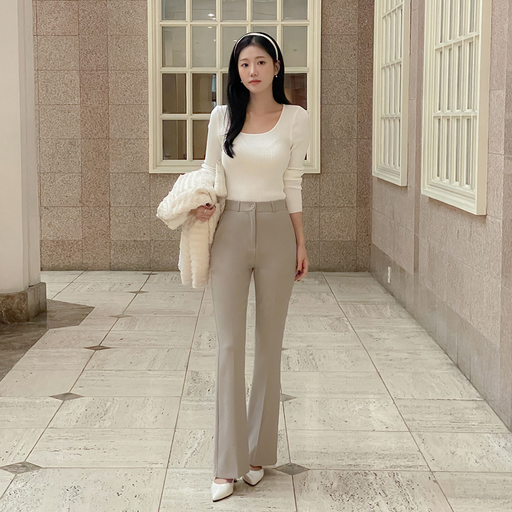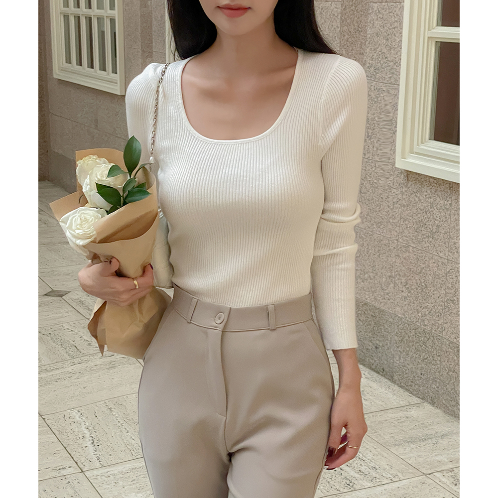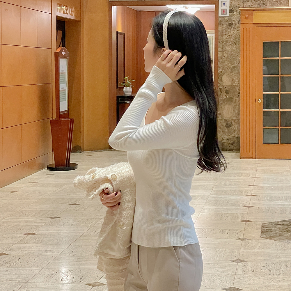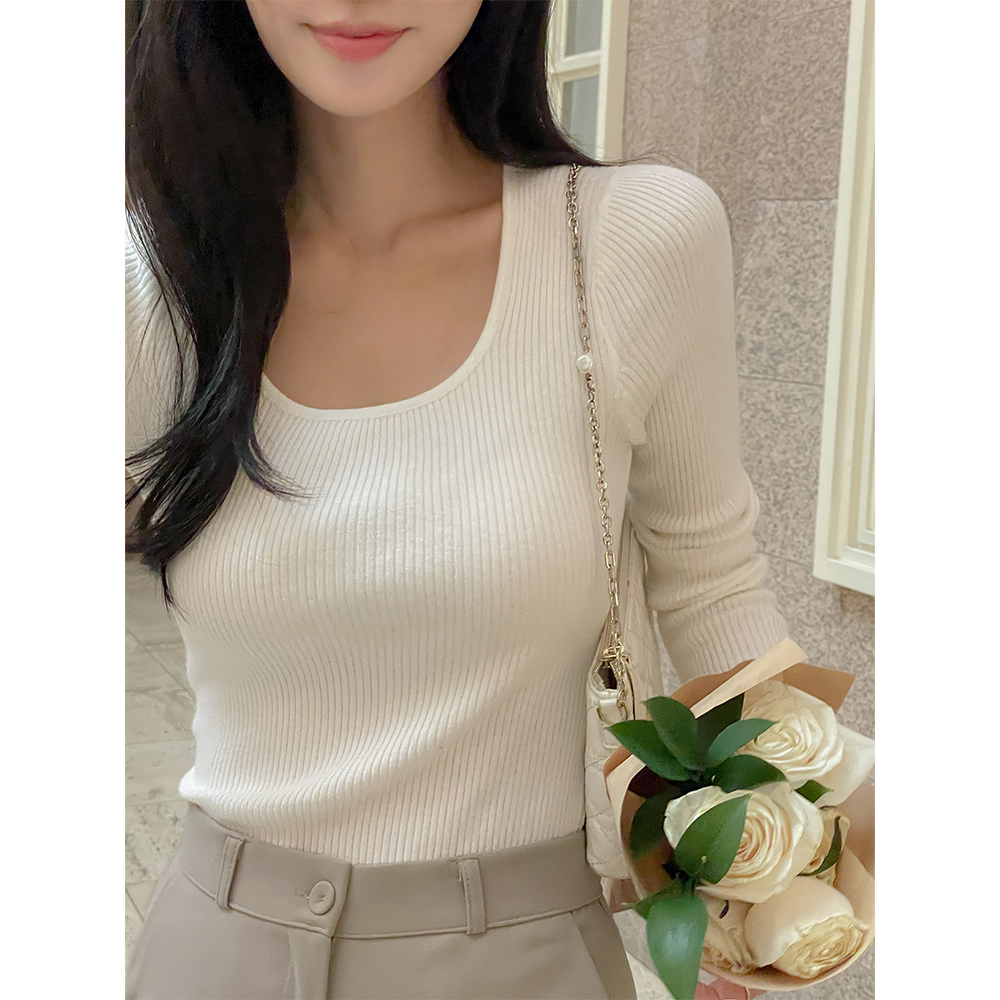 日常 U领 条绒 长袖 针织衫