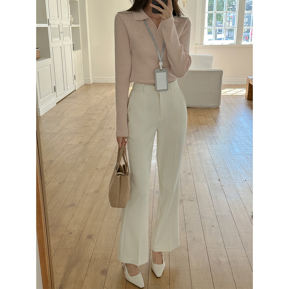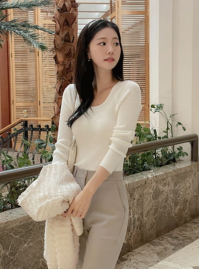 日常 U领 条绒 长袖 针织衫