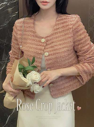 玫瑰 穗饰 粗呢 7分裤 夹克