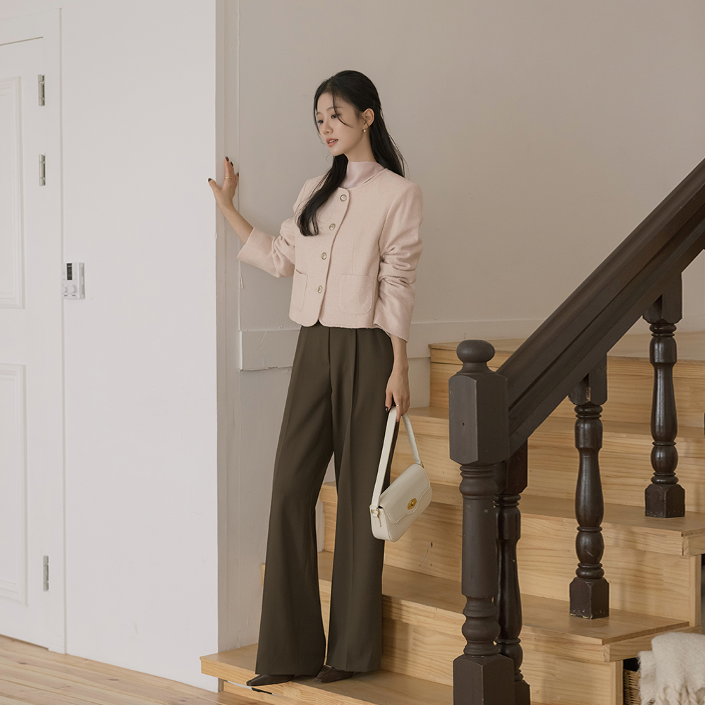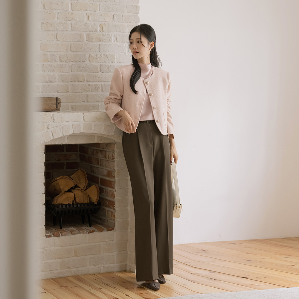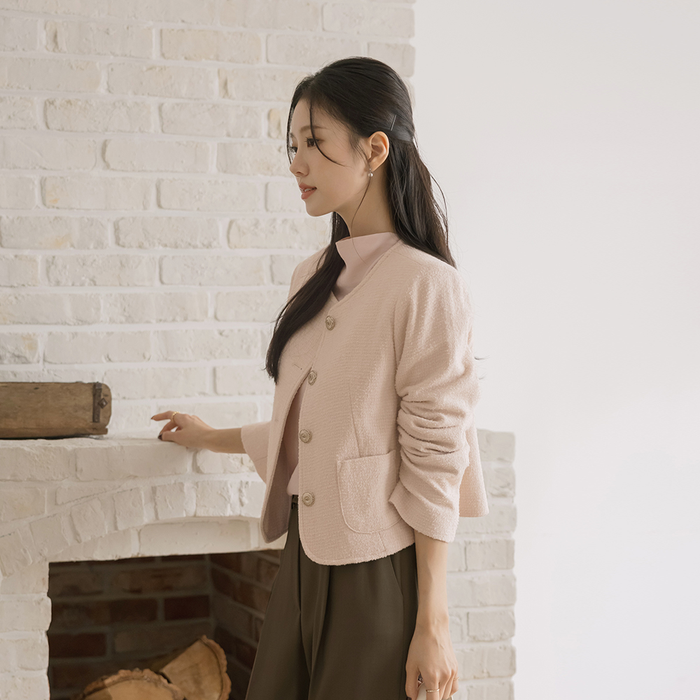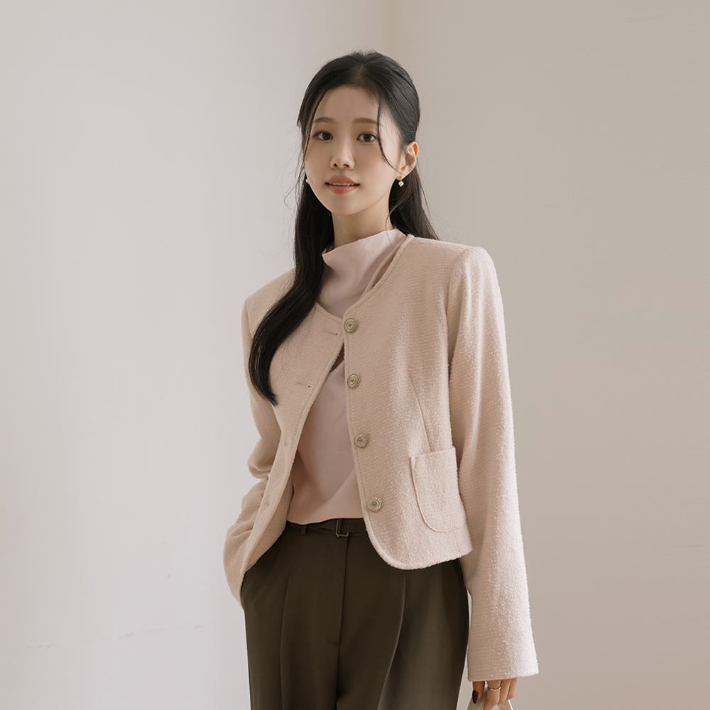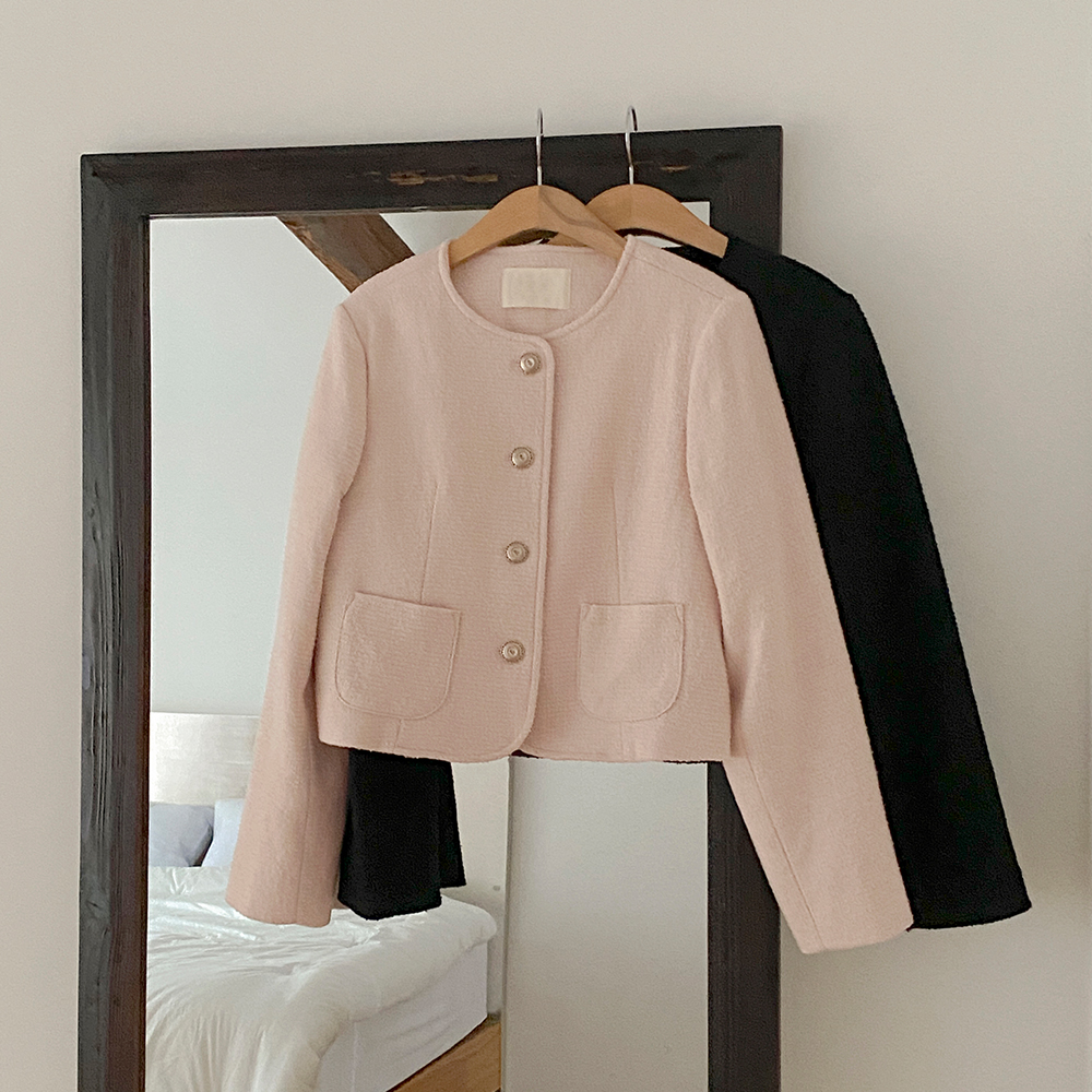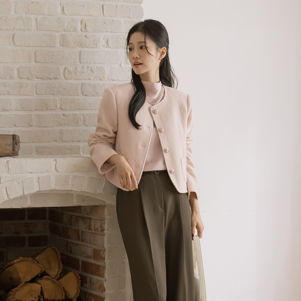 玫瑰色 圆领 羊毛 粗呢 夹克