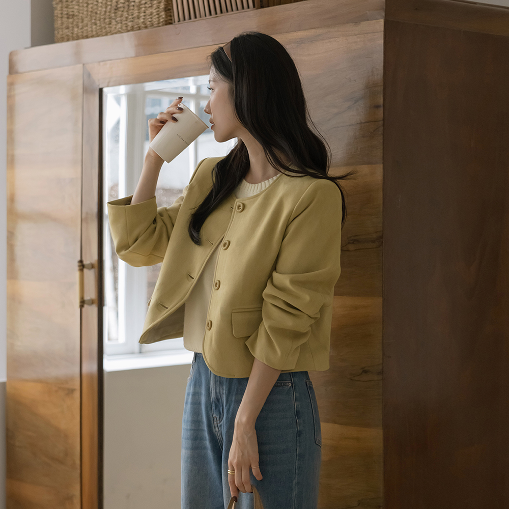 法式 圆领 翻毛皮 夹克
