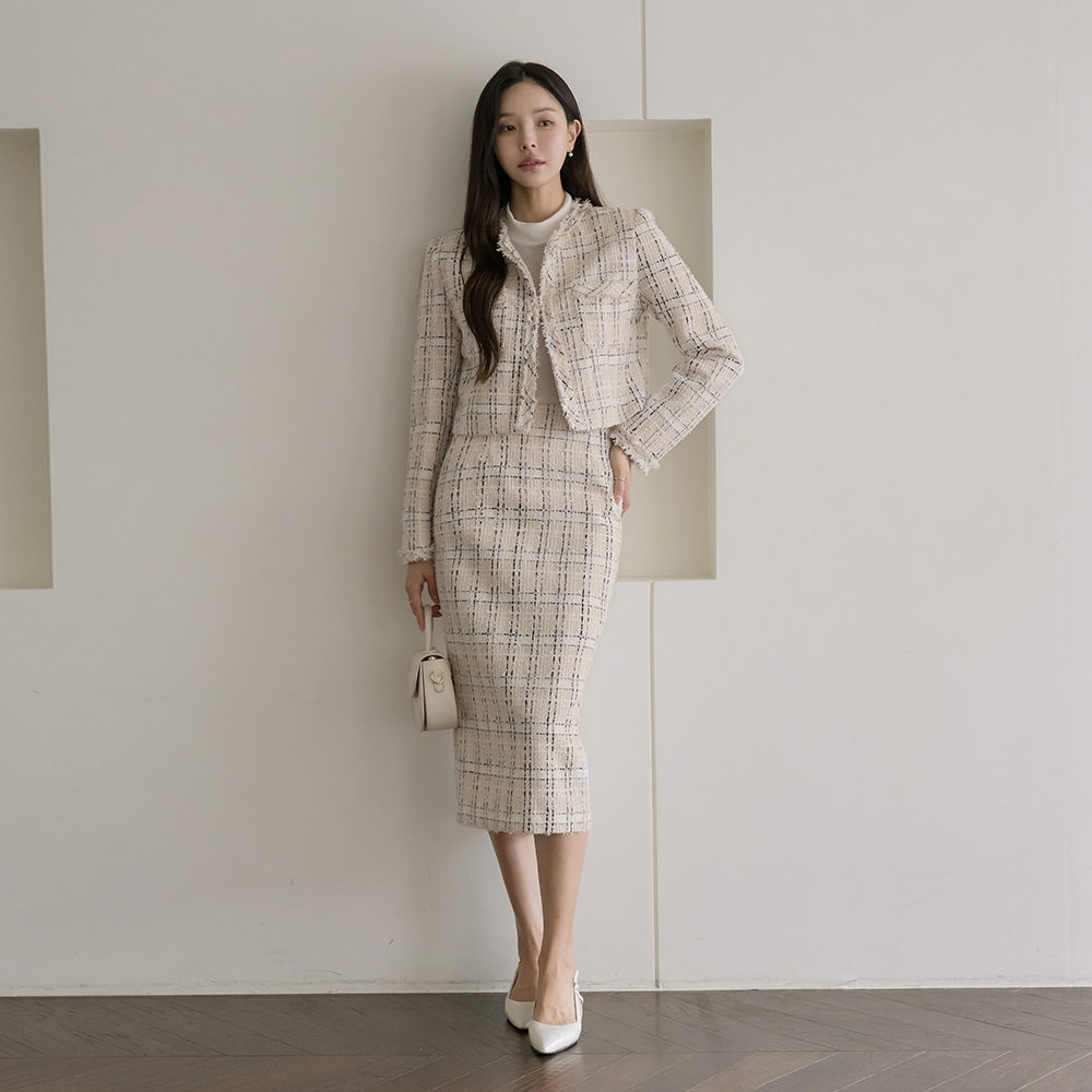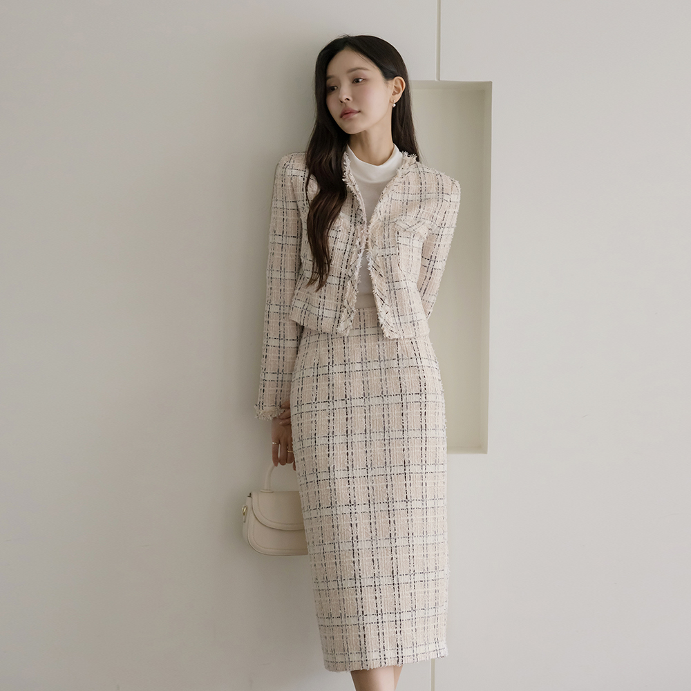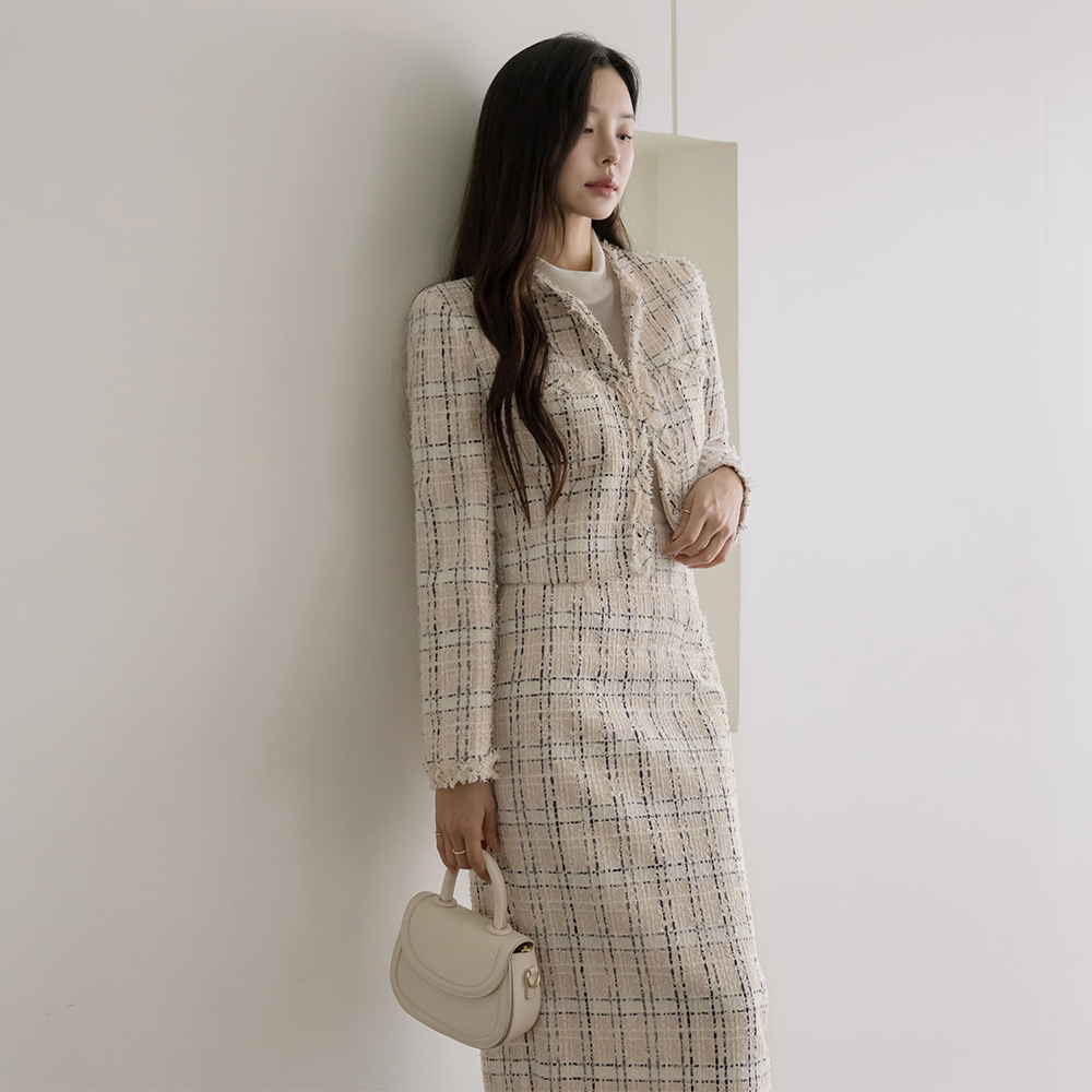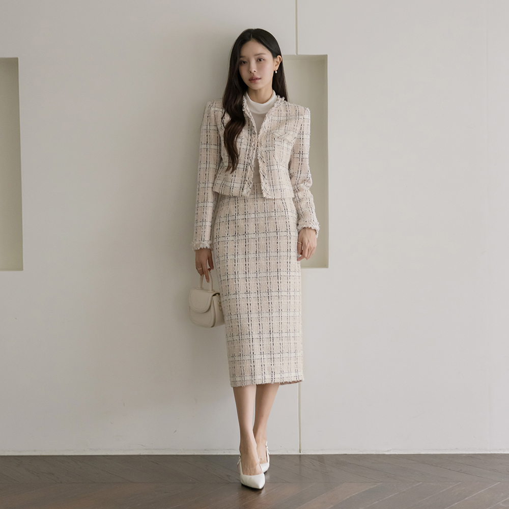 茑萝 格子 穗饰 粗呢 Set-up 夹克