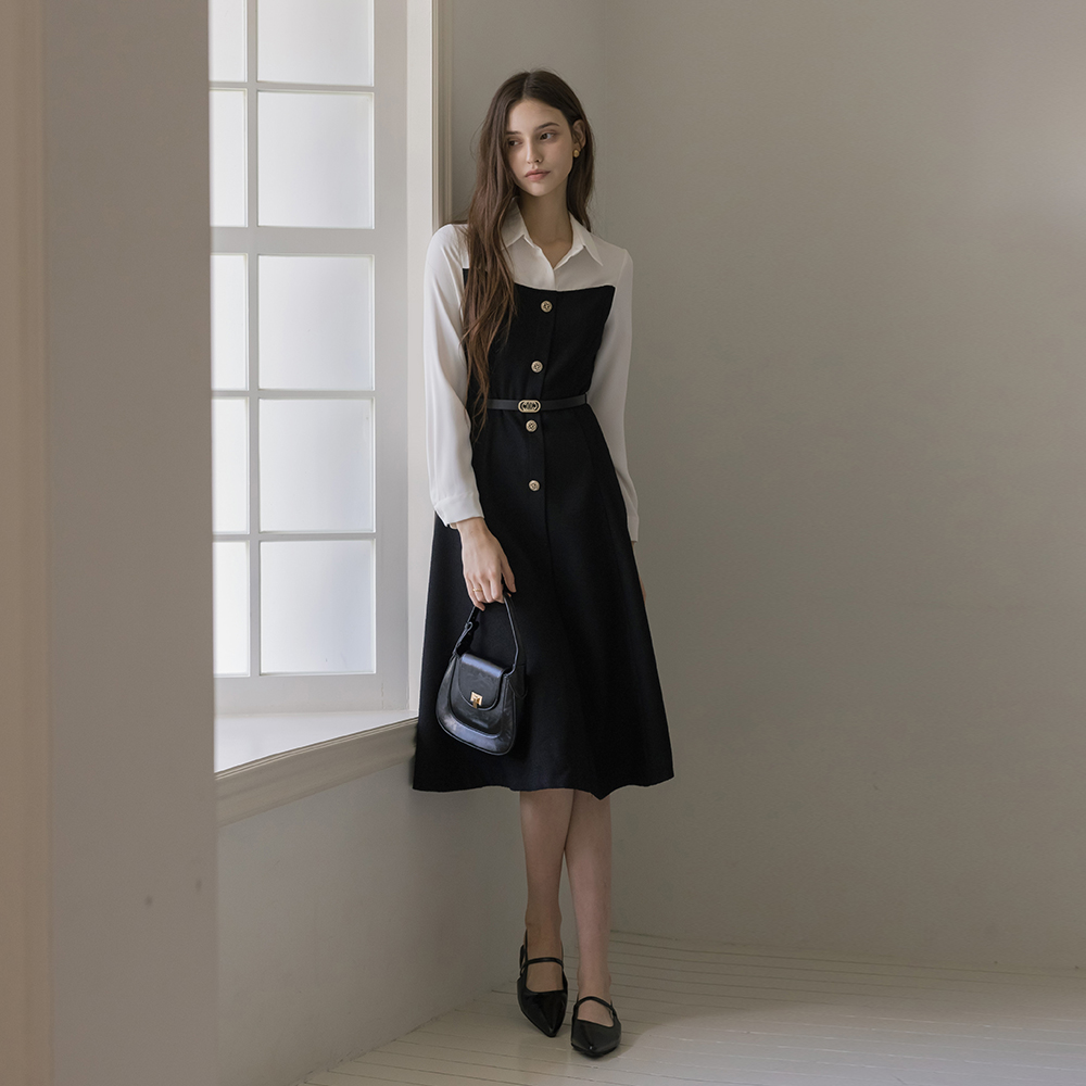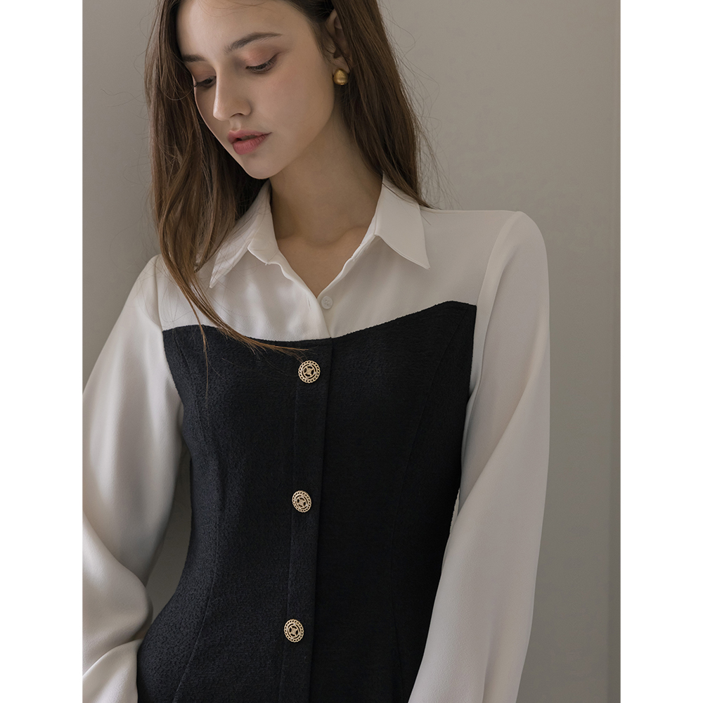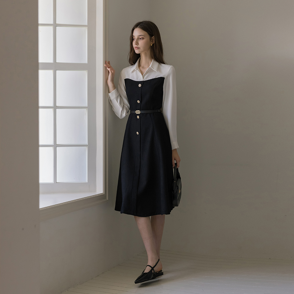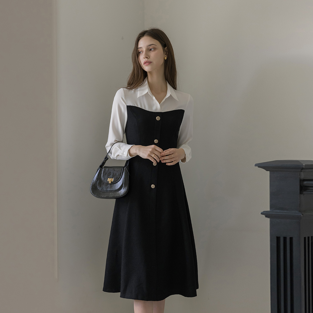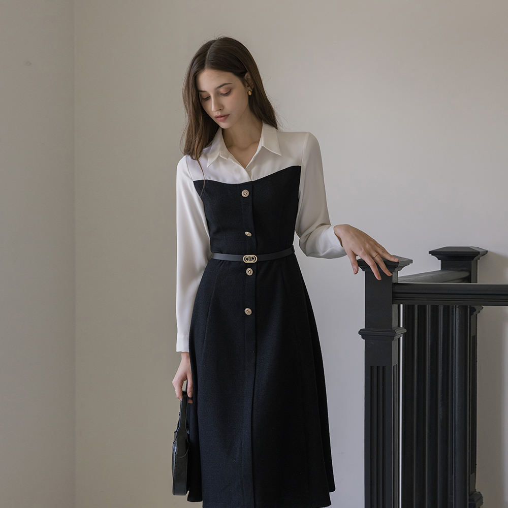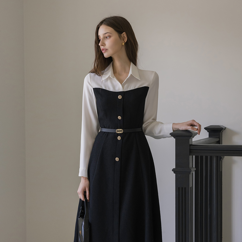 缪斯 古典 分层 粗呢 连衣裙