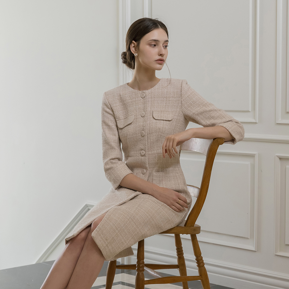 T H字型 粗呢 连衣裙
