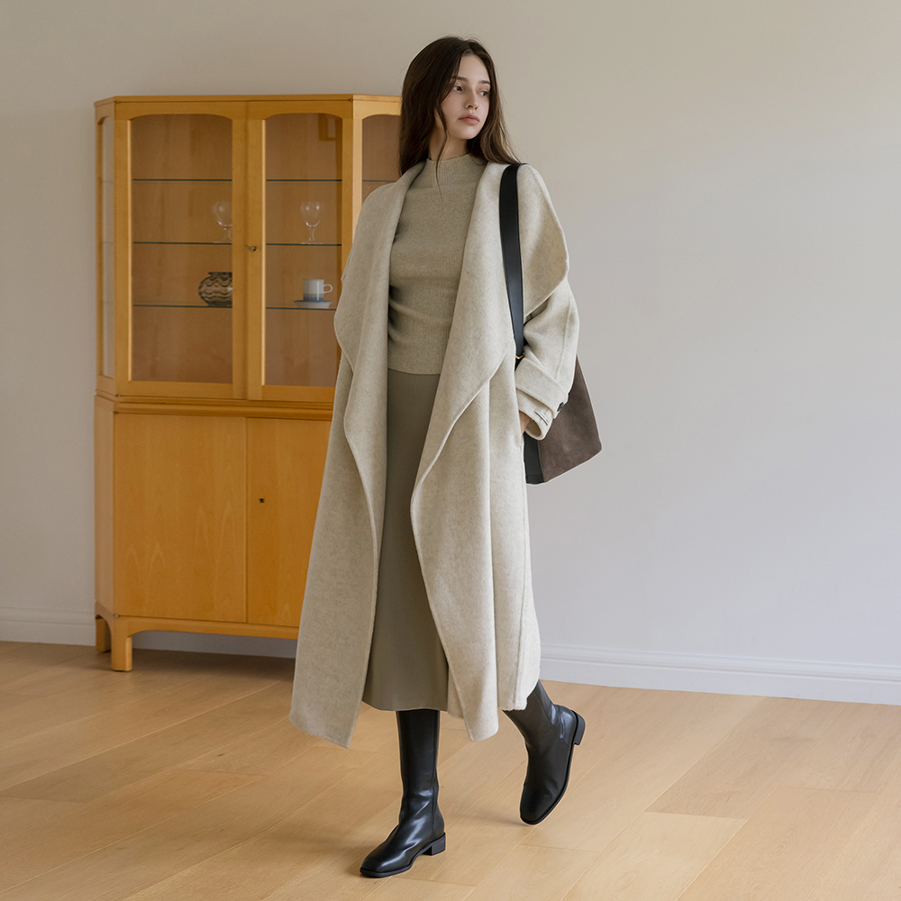 高龄 羊毛 手工 长款 大衣(+腰带)