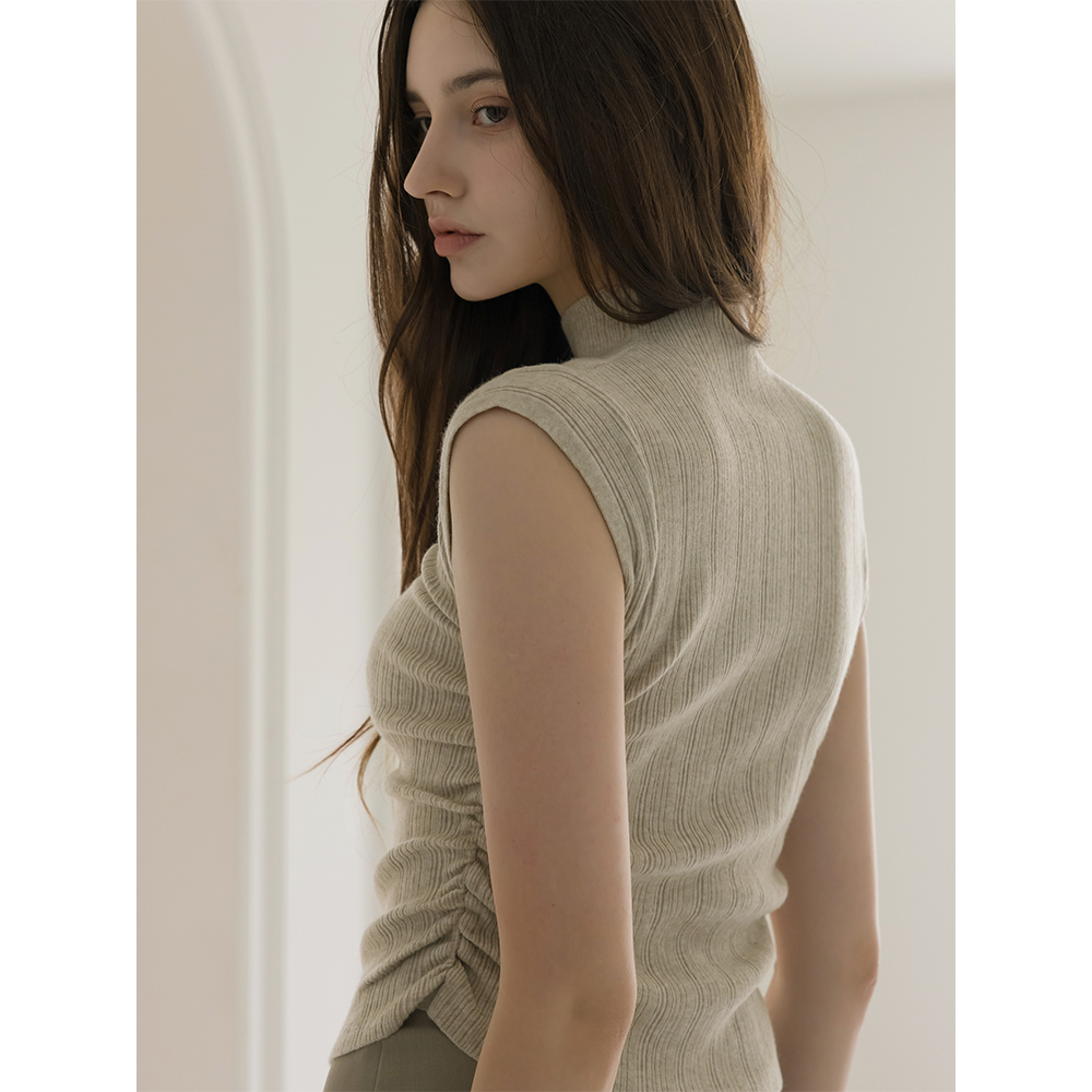 에반 半高领 领 褶皱 条绒 针织衫