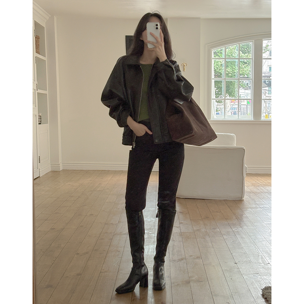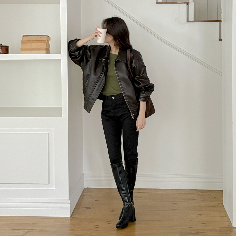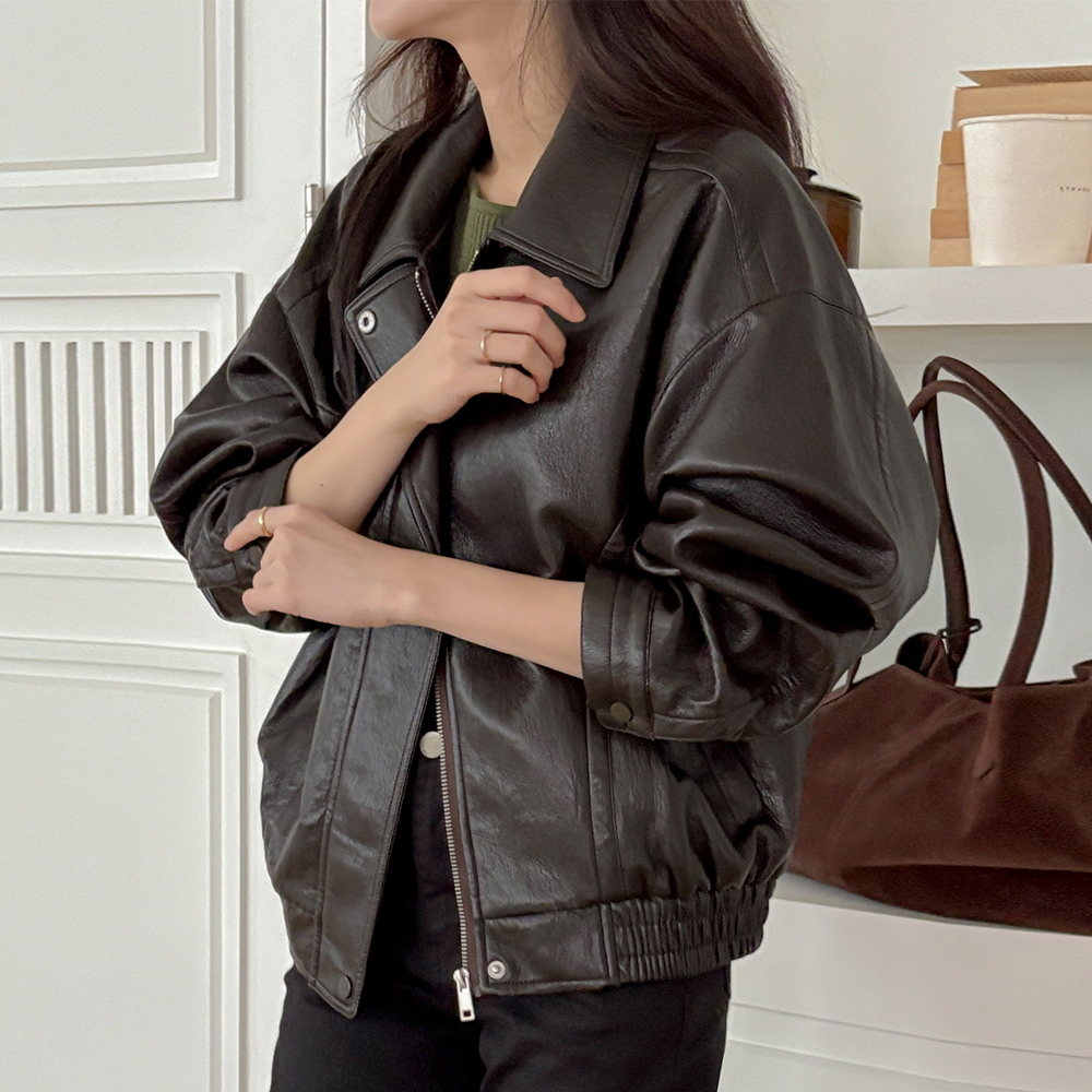 领子 拉链卫衣 비건 人造皮夹 夹克