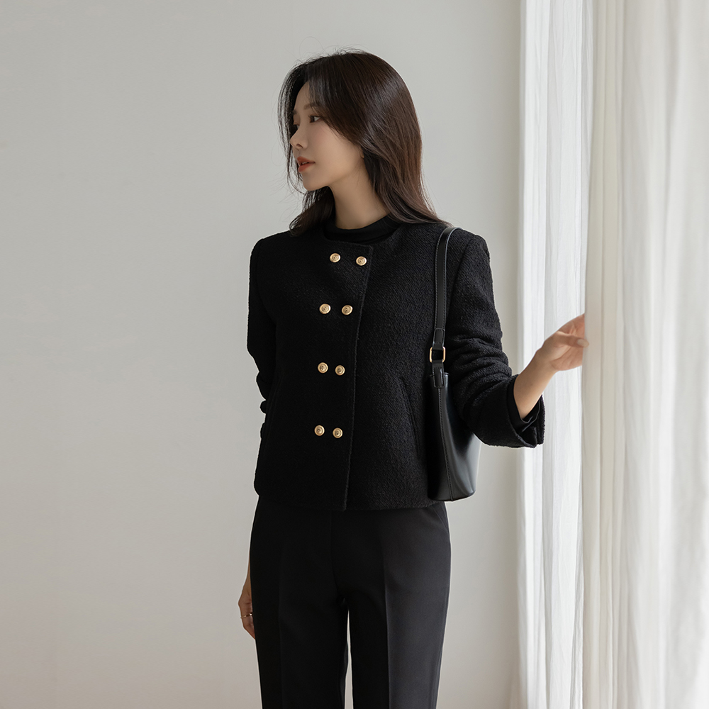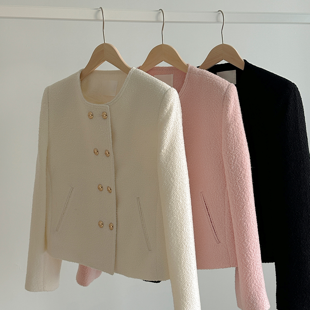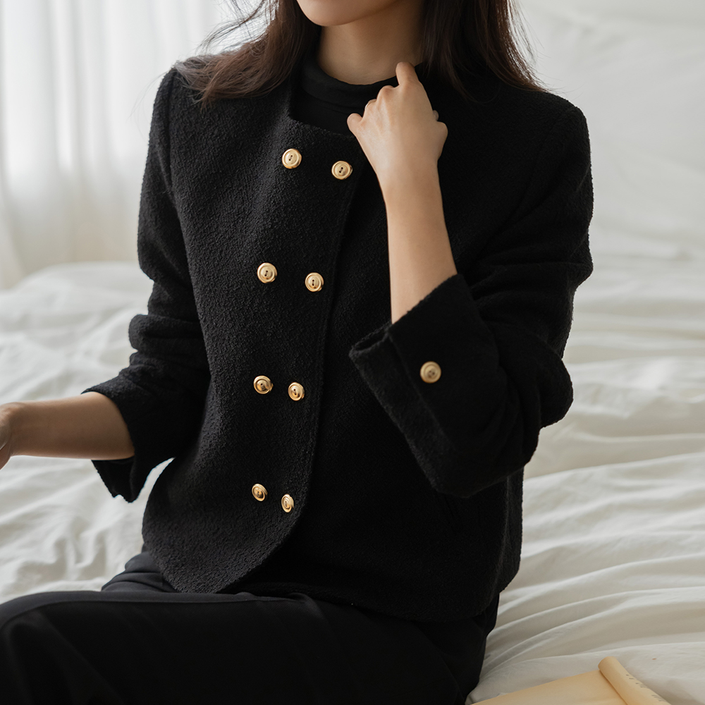 黄金 双 扣子 粗呢 羊毛 夹克