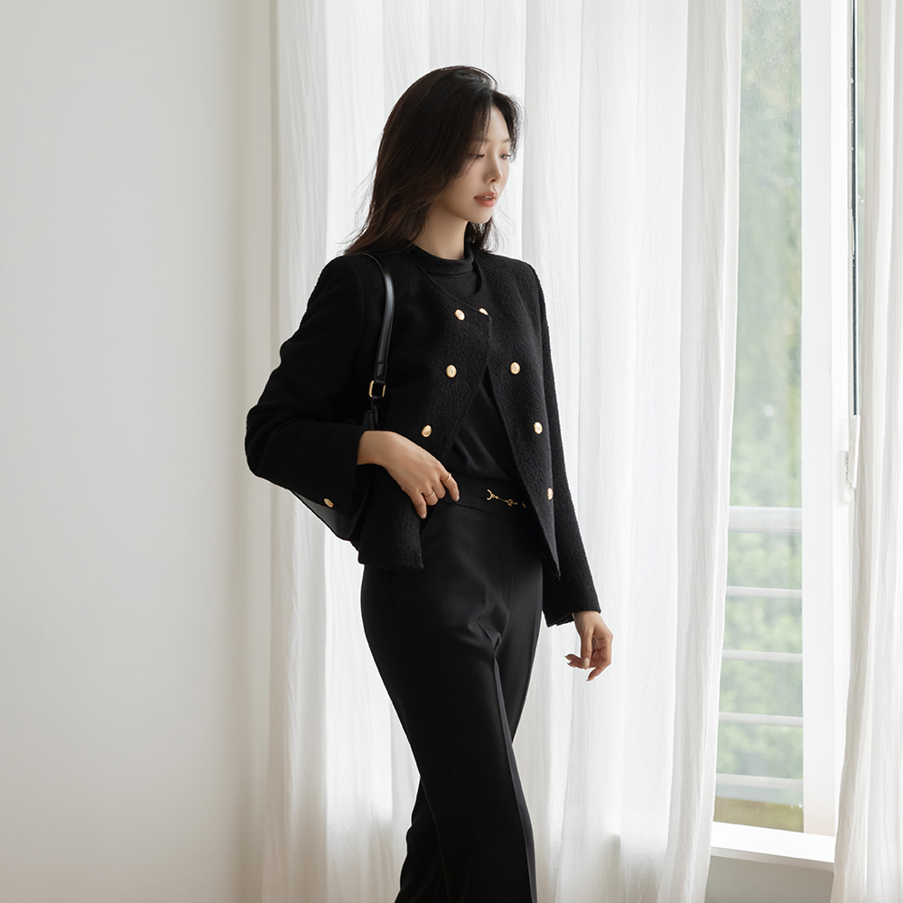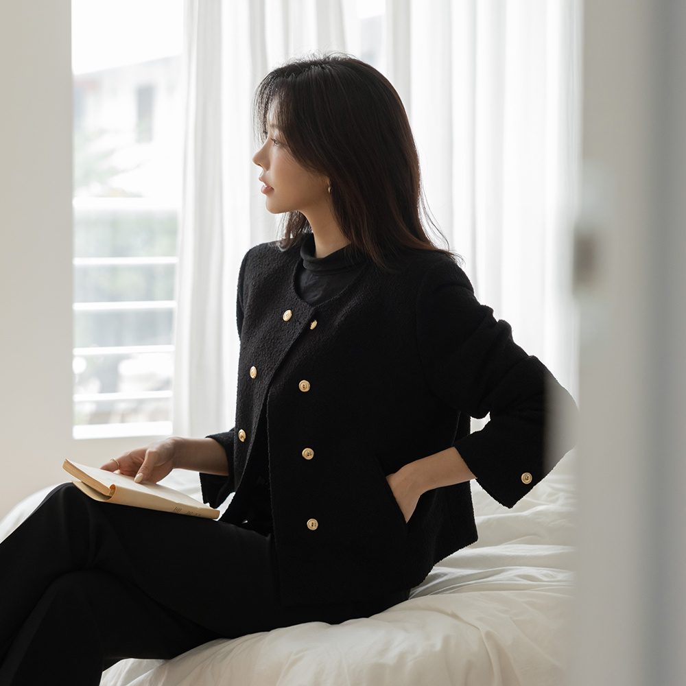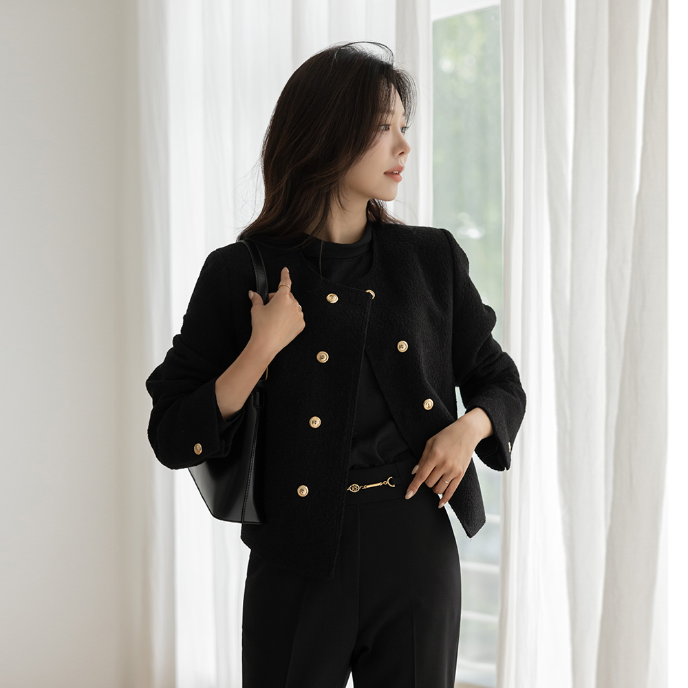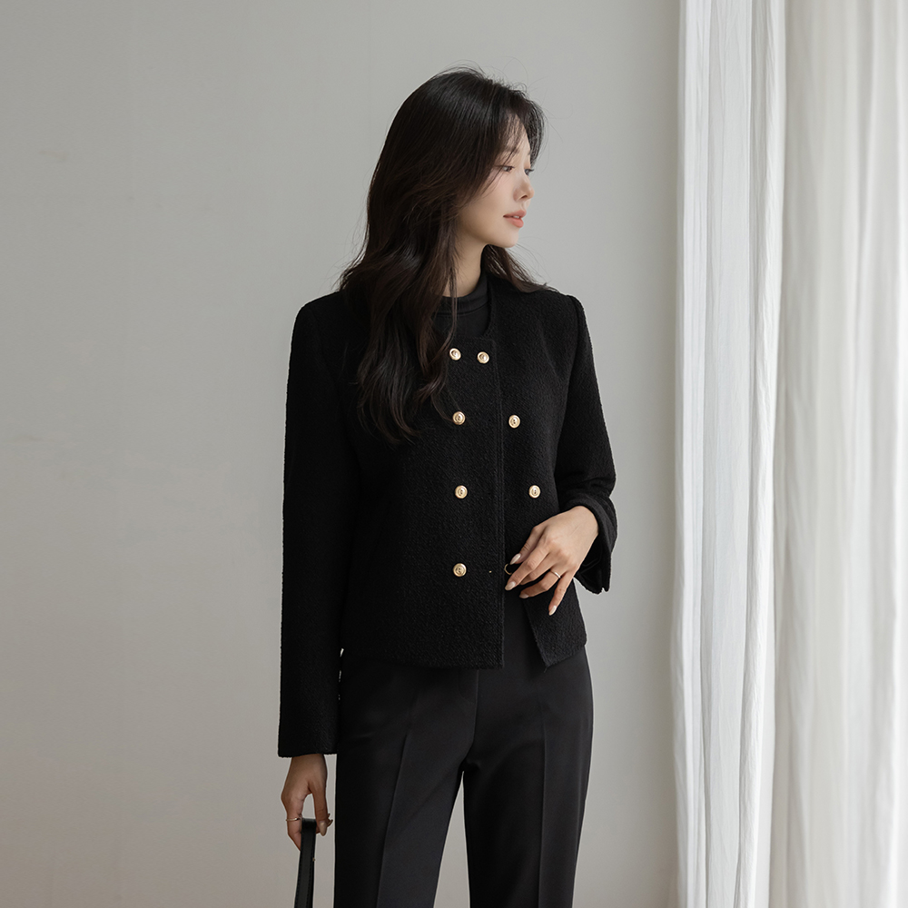 黄金 双 扣子 粗呢 羊毛 夹克