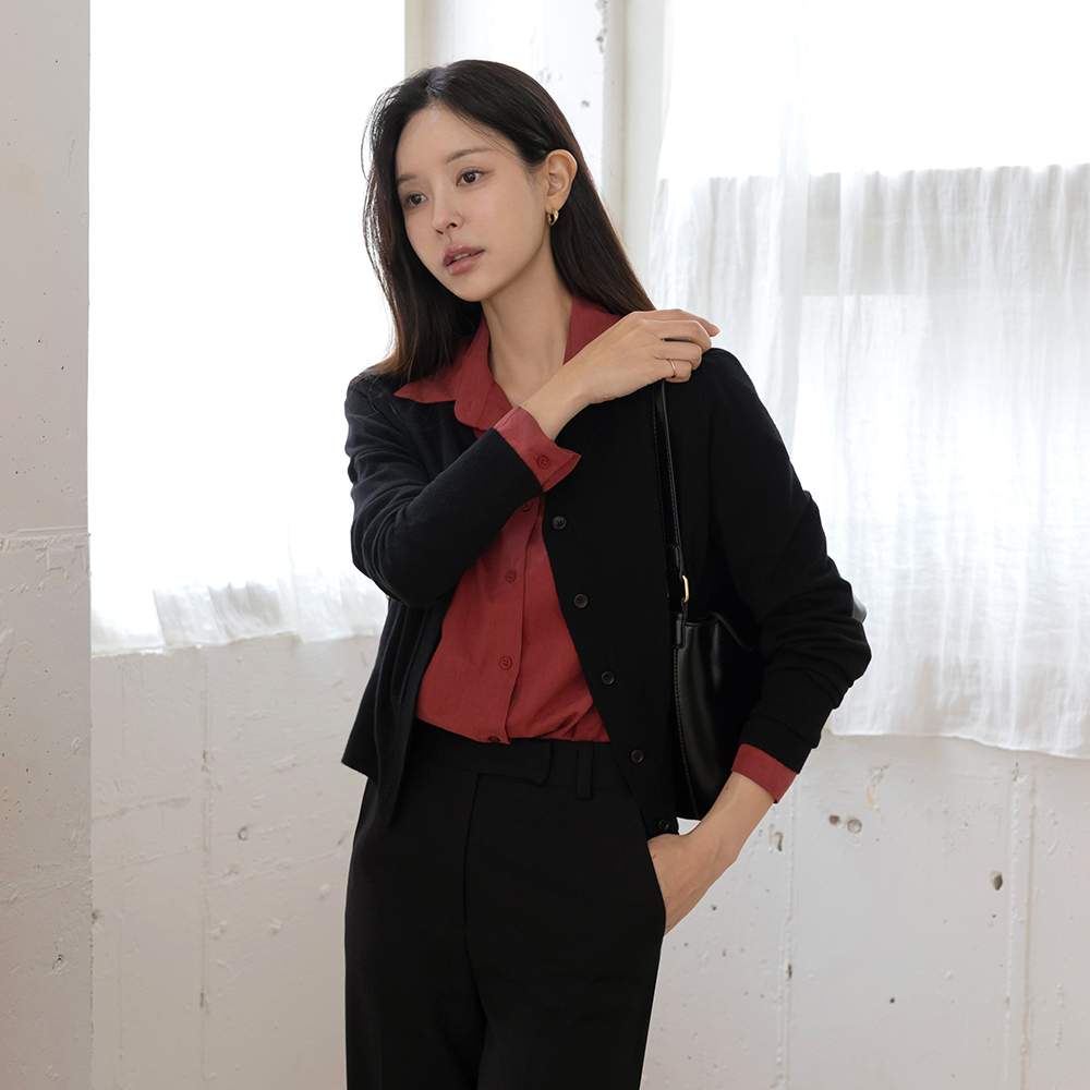 V字领 Whole Garment 羊毛 长袖 针织衫