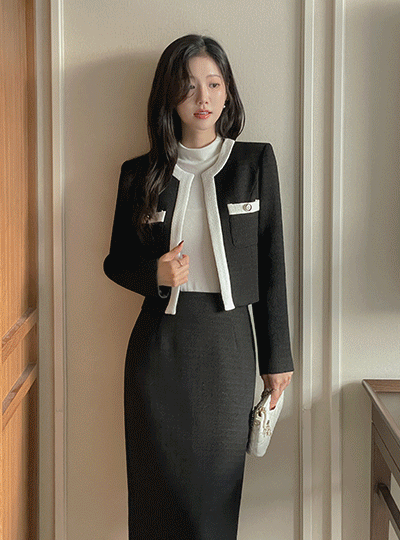 古典 配色 珍珠 粗呢 Set-up 夹克