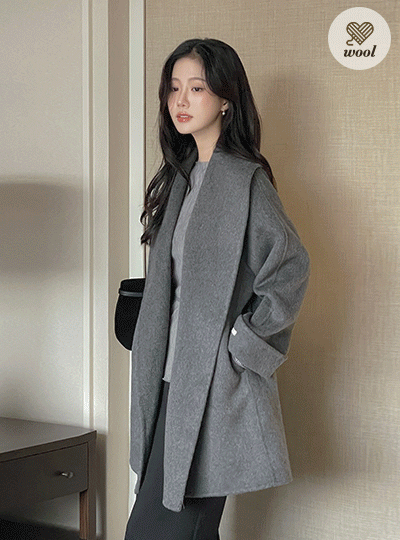 披巾领 羊毛 手工 大衣(+腰带)