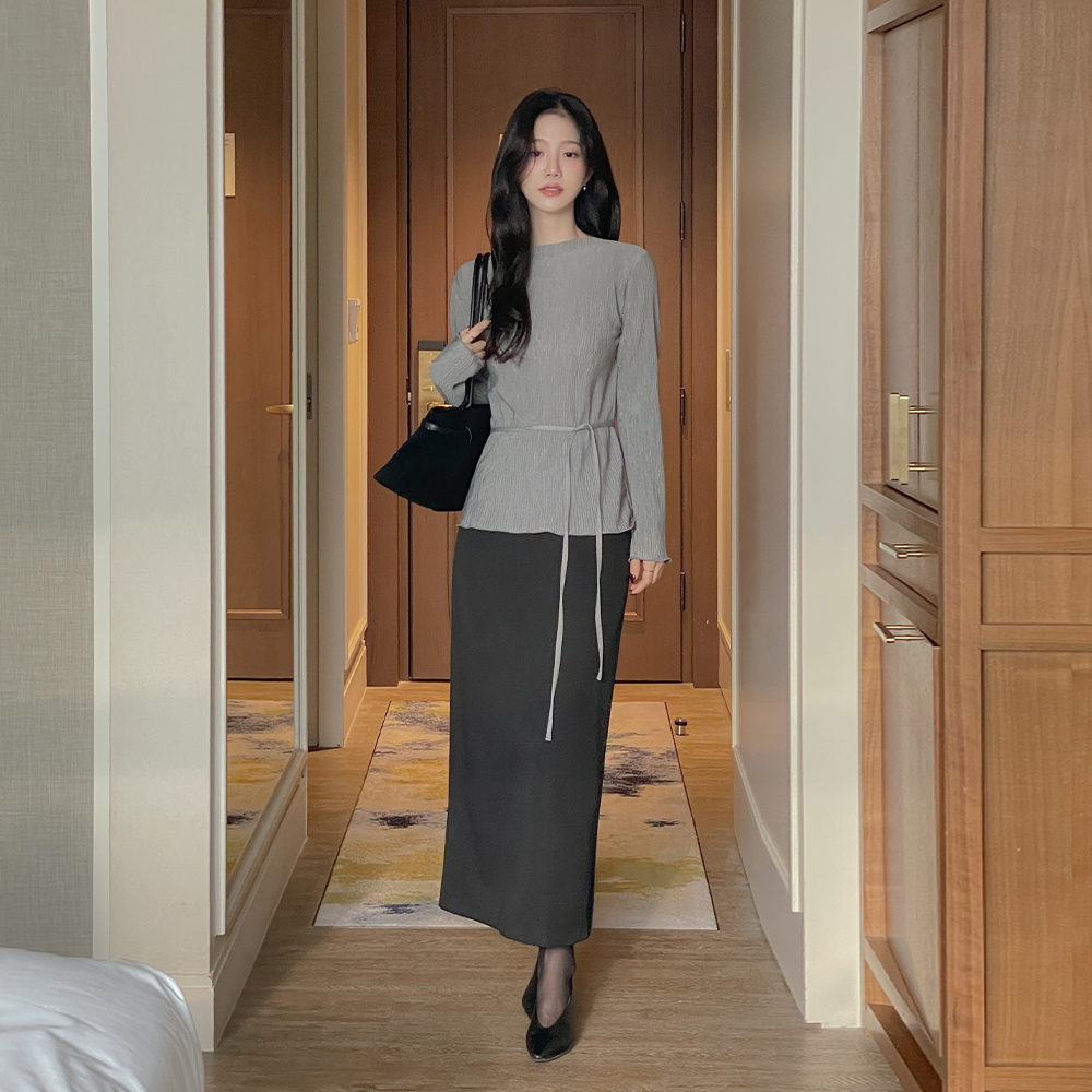 [O:neul] 去皱纹 半高领 漂亮的版型 T恤衫(+腰带)