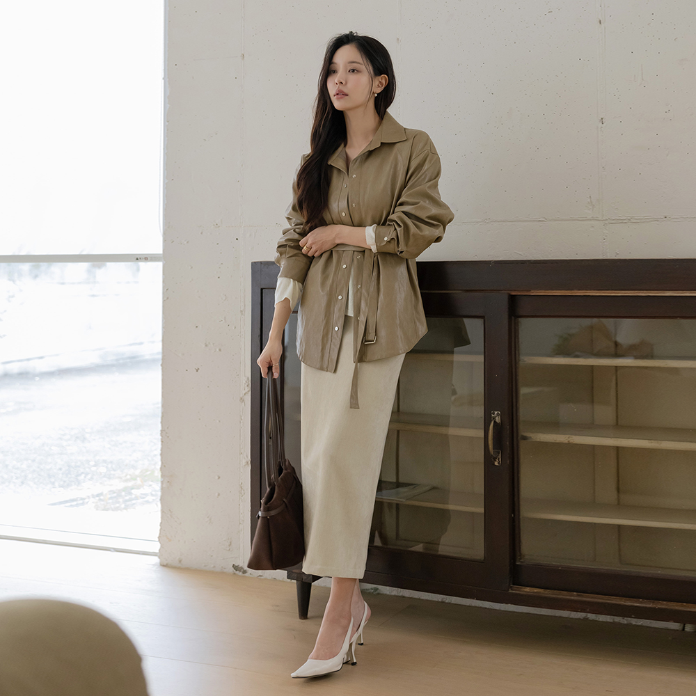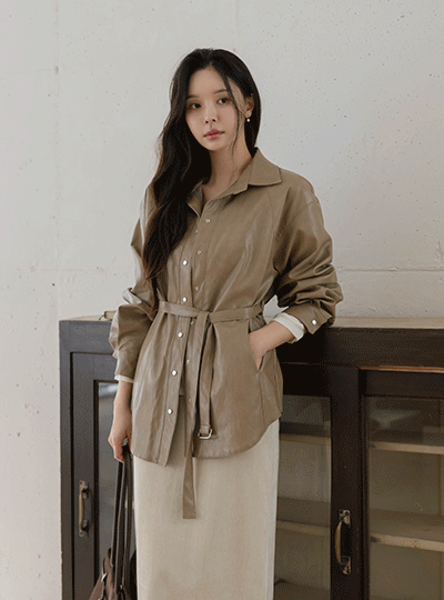 翻领 覆盖 人造皮夹 夹克(+腰带)